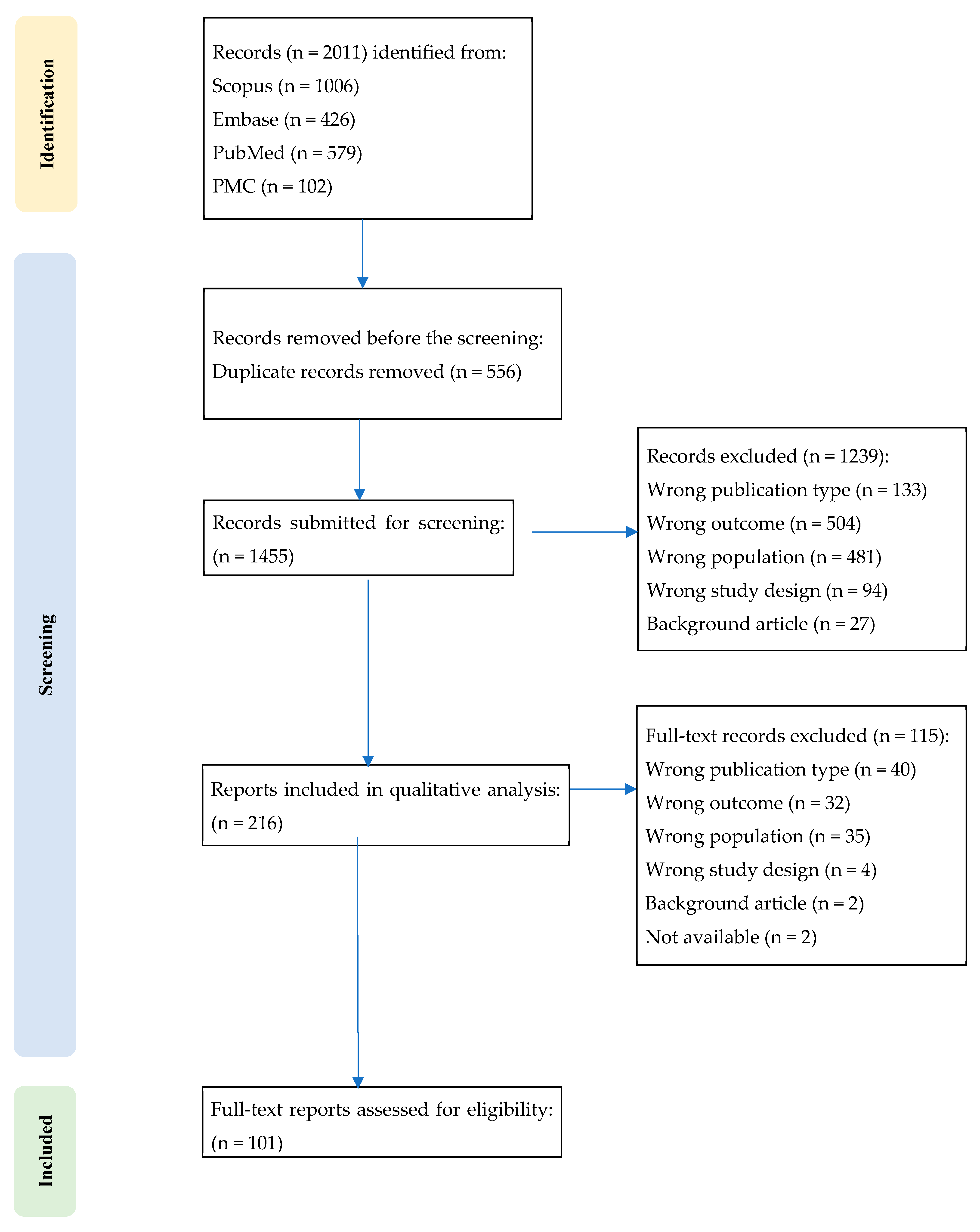 - Page, M.J.; McKenzie, J.E.; Bossuyt, P.M.; Boutron, I.; Hoffmann, T.C.; Mulrow, C.D.; Shamseer, L.; Tetzlaff, J.M.; Akl, E.A.; Brennan, S.E.; et al. The PRISMA 2020 Statement: An Updated Guideline for Reporting Systematic Reviews. BMJ 2021, 372, n71. [Google Scholar] [CrossRef]