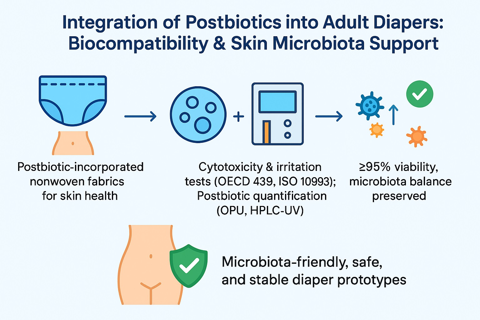 Ibrahimoglu, O.O.; Tarhan Celebi, L.; Dikbiyik, D.E.; Gokce, H.B.; Cakici, B.; Türkoğlu, Z.; Atsu, A.N.; Aslan, I. Integration of Postbiotics into Adult Diapers: In Vitro Evaluation of Biocompatibility and Effect on Skin Microbiota. Life 2025, 15, 1652. https://doi.org/10.3390/life15111652