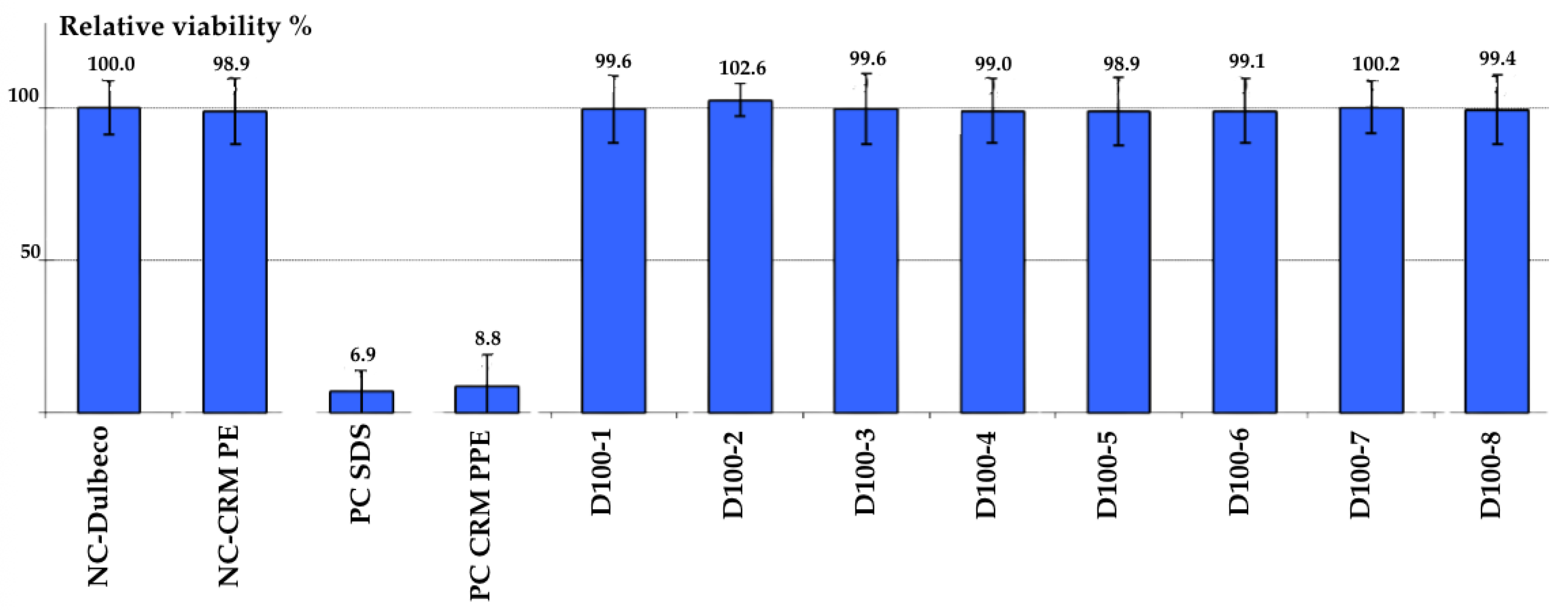 3.3.1. Keratinocyte Cytotoxicity (ISO 10993-5)