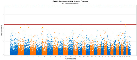 APA StyleBratu, D. G., Blaga, Ș., Zanfira, B. C., Mircu, C., Spătaru, I. I., Torda, I., Mizeranschi, A. E., Ilie, D. E., Cziszter, L. T., Vizitiu, D. A., Boldura, O. M., & Huțu, I. (2025). Genome-Wide Association Study for Milk Protein Content in Romanian Dual-Purpose Cattle. Life, 15(11), 1668. https://doi.org/10.3390/life15111668