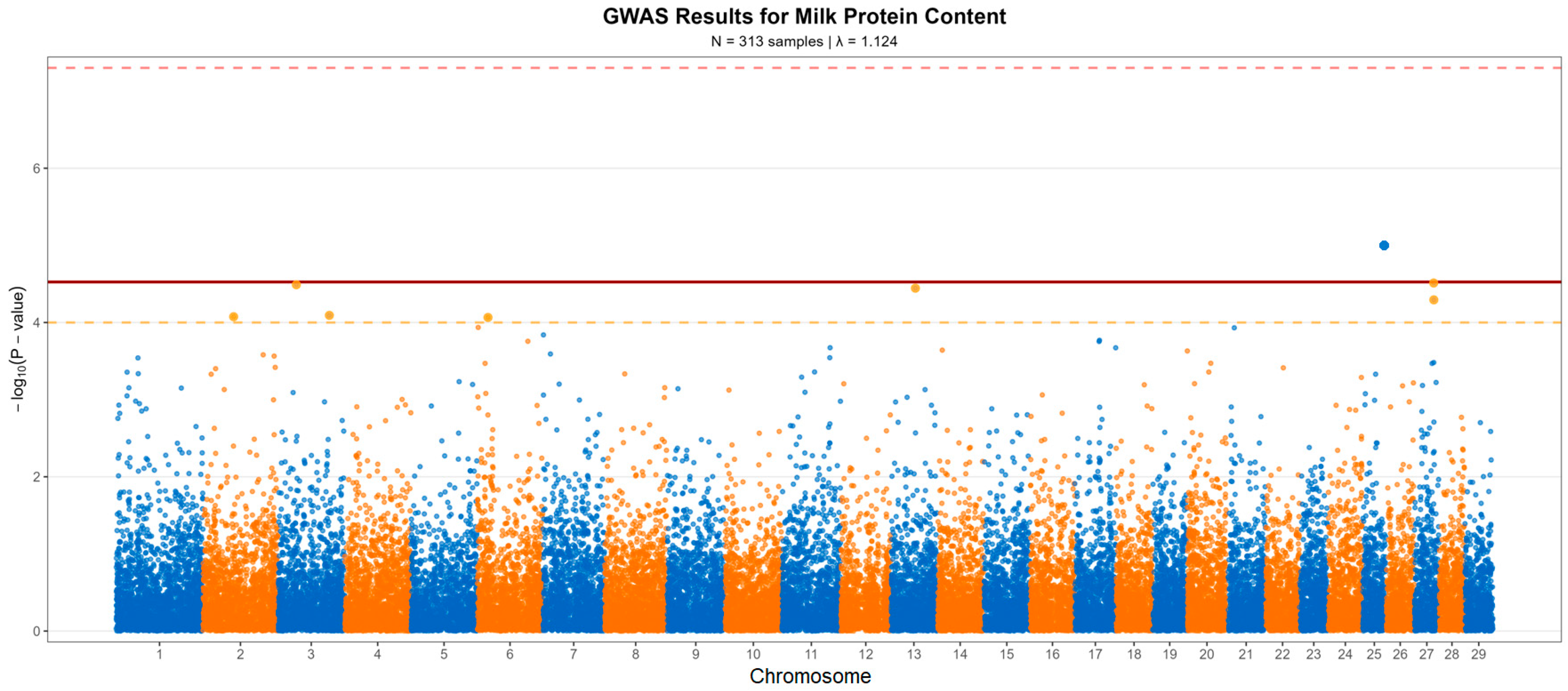 Bratu DG, Blaga Ș, Zanfira BC, Mircu C, Spătaru II, Torda I, Mizeranschi AE, Ilie DE, Cziszter LT, Vizitiu DA, et al. Genome-Wide Association Study for Milk Protein Content in Romanian Dual-Purpose Cattle. Life. 2025; 15(11):1668. https://doi.org/10.3390/life15111668