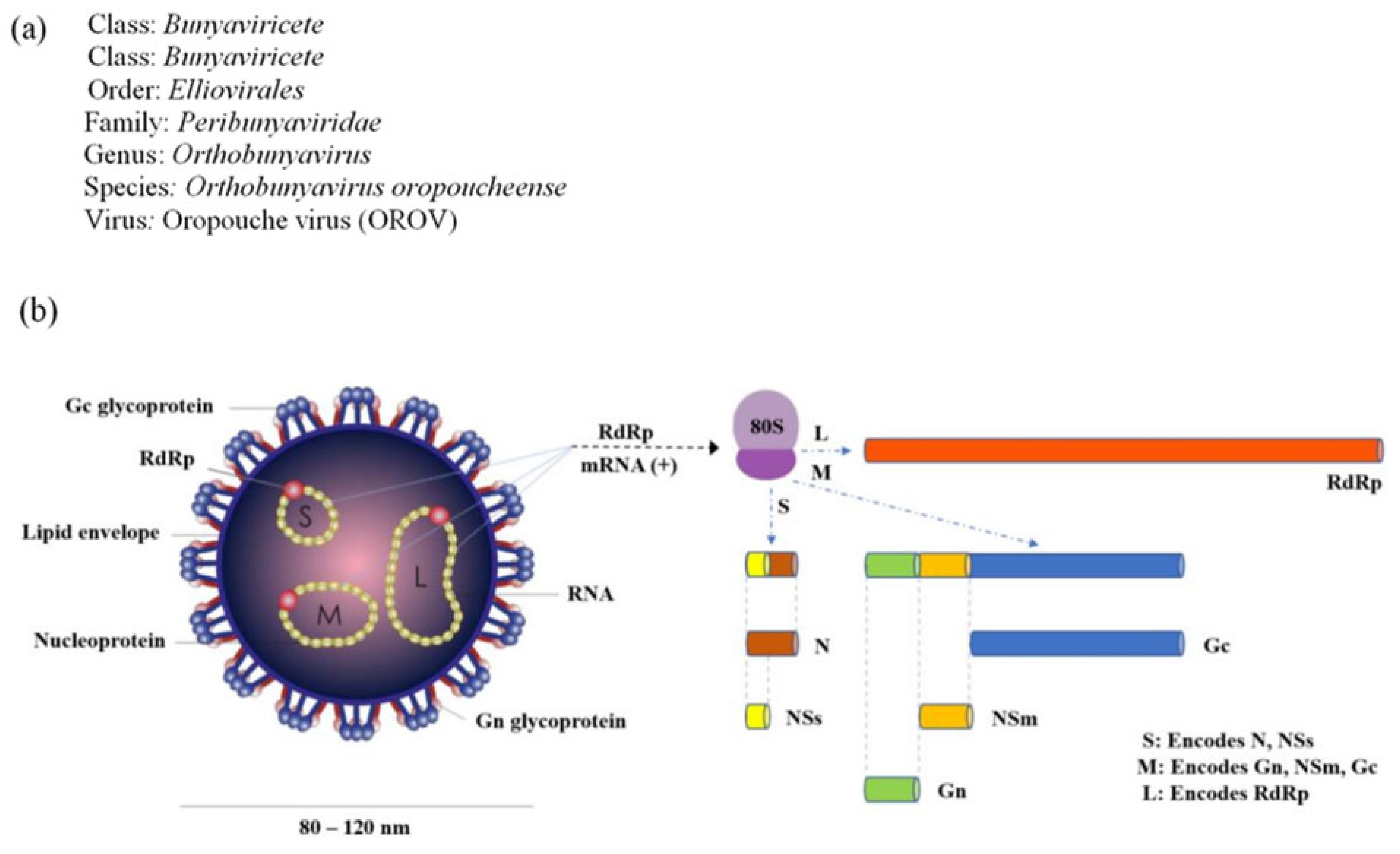 - Tilston-Lunel, N.L. Oropouche Virus: An Emerging Orthobunyavirus. J. Gen. Virol. 2024, 105, 002027. [Google Scholar] [CrossRef]