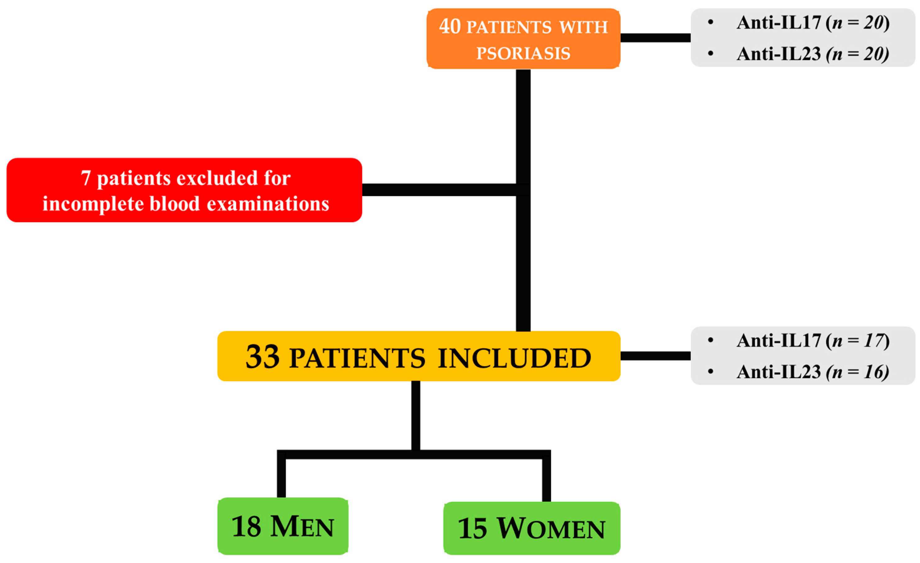 | Parameters | Anti-IL-17 (n = 17) | Anti-IL-23 (n = 16) | p-Value |