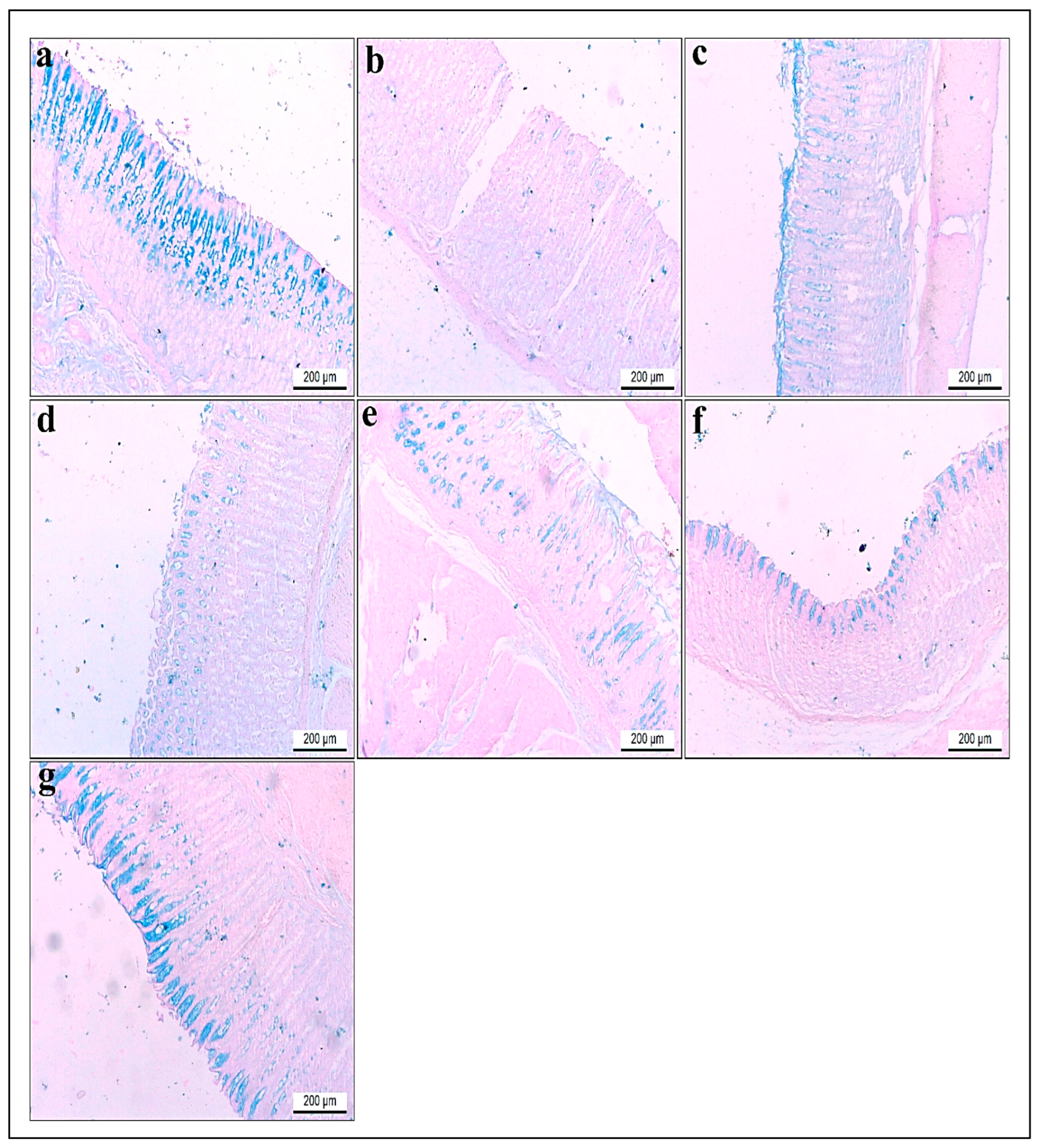 3.3.7. Histochemical Investigations of Alcian Blue pH (2.5)