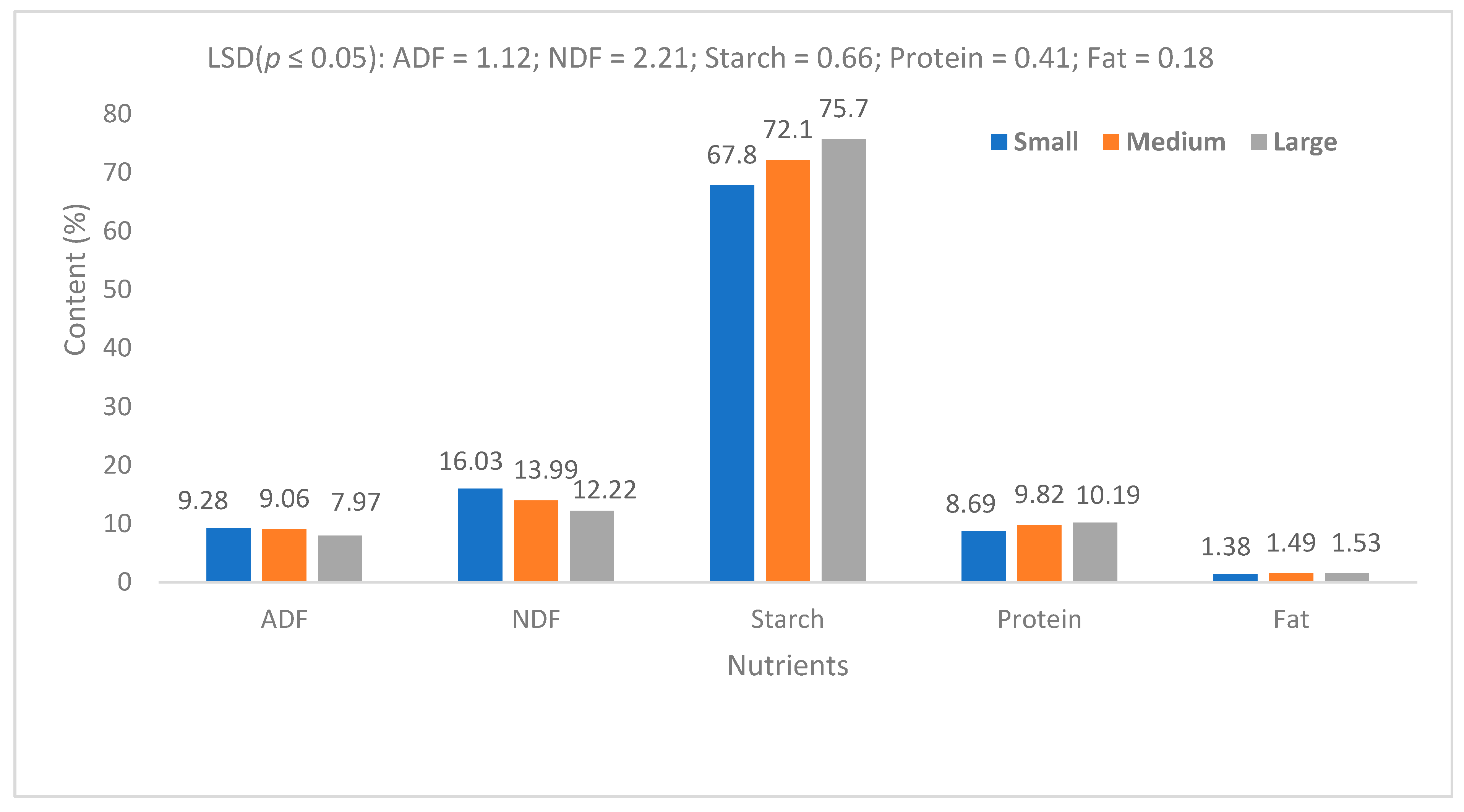 Figure 6). The starch content consistently improved as the propagule size increased (