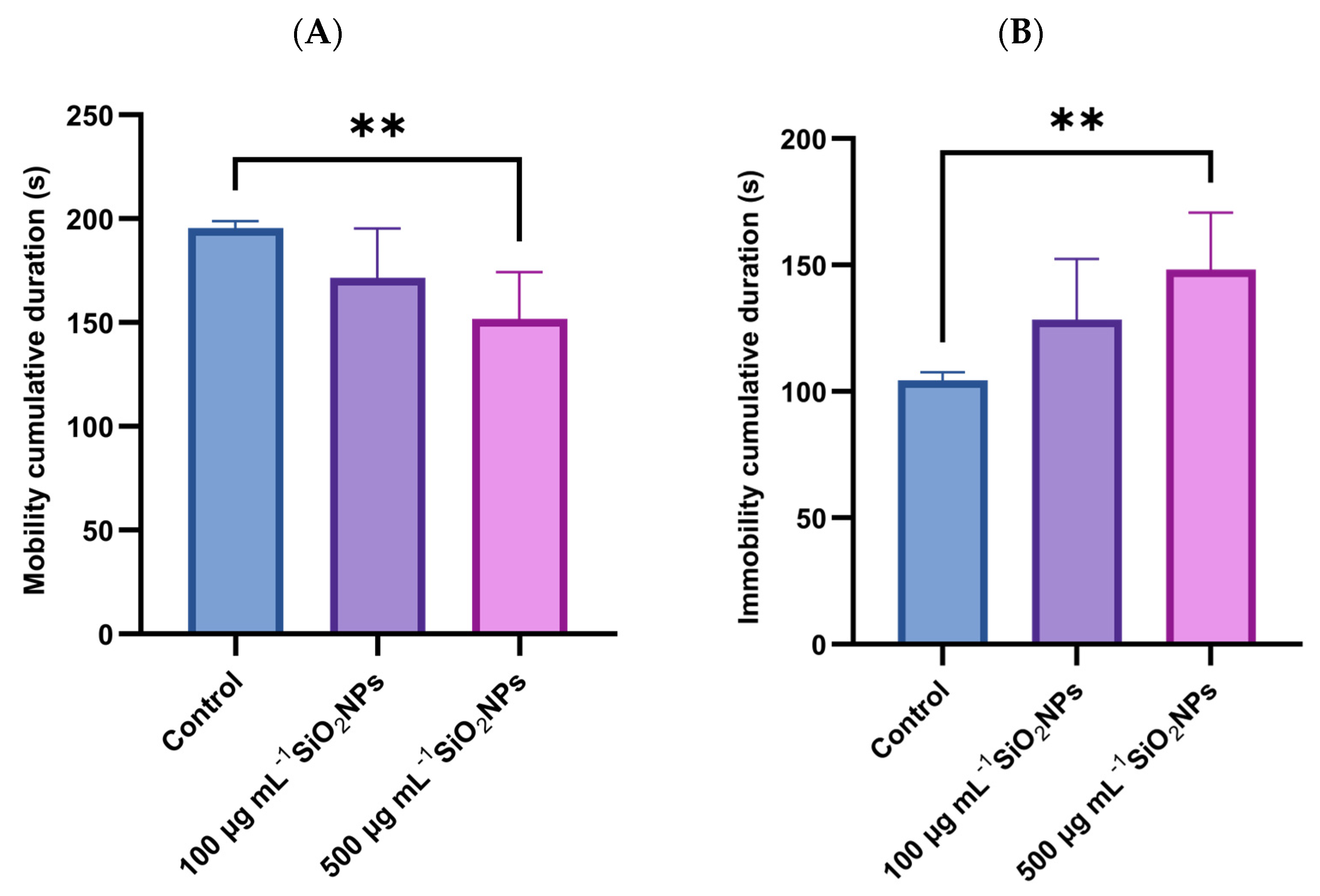 - Li, X.; Ji, X.; Wang, R.; Zhao, J.; Dang, J.; Gao, Y.; Jin, M. Zebrafish behavioral phenomics employed for characterizing behavioral neurotoxicity caused by silica nanoparticles. Chemosphere 2020, 240, 124937. [Google Scholar] [CrossRef]