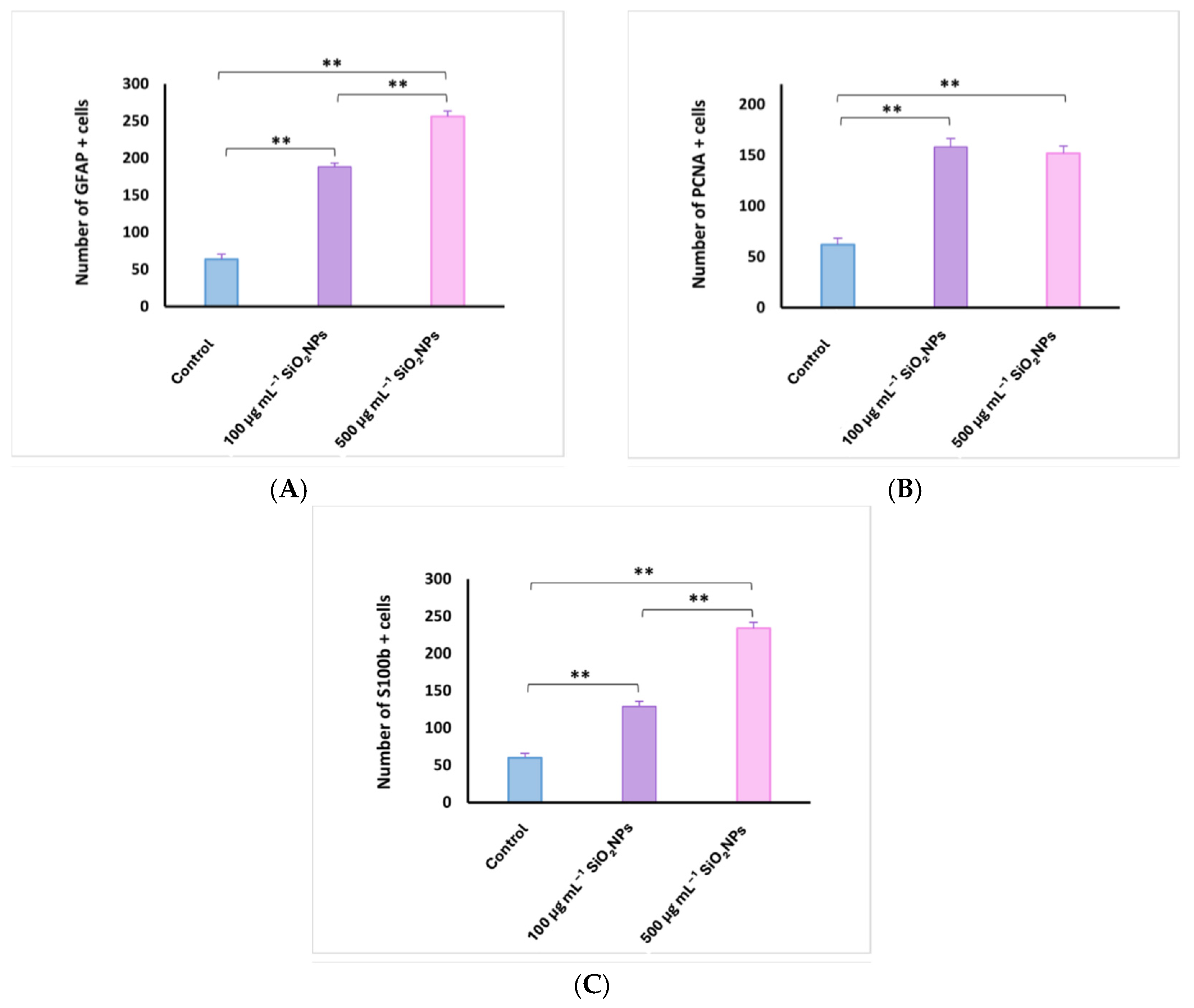 - Hou, S.; Li, C.; Wang, Y.; Sun, J.; Guo, Y.; Ning, X.; Ma, K.; Li, X.; Shao, H.; Cui, G.; et al. Silica Nanoparticles Cause Activation of NLRP3 Inflammasome in-vitro Model-Using Microglia. Int. J. Nanomed. 2022, 17, 5247–5264. [Google Scholar] [CrossRef]
