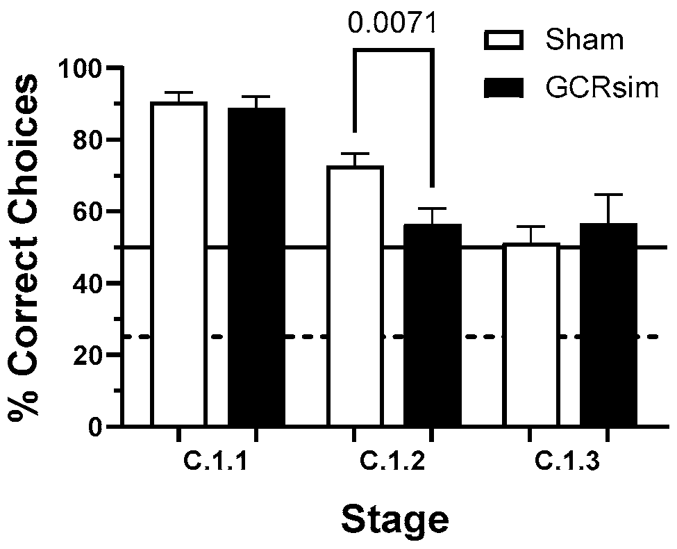 - Stephenson, S.; Britten, R. Simulated Space Radiation Exposure Effects on Switch Task Performance in Rats. Aerosp. Med. Hum. Perform. 2022, 93, 673–680. [Google Scholar] [CrossRef] [PubMed]