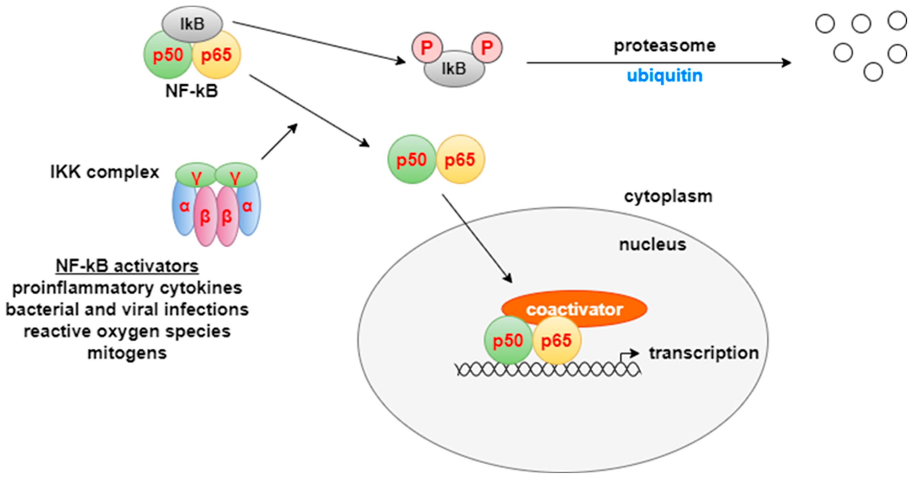 - Napetschnig, J.; Wu, H. Molecular Basis of NF-κB Signaling. Annu. Rev. Biophys. 2013, 42, 443–468. [Google Scholar] [CrossRef]