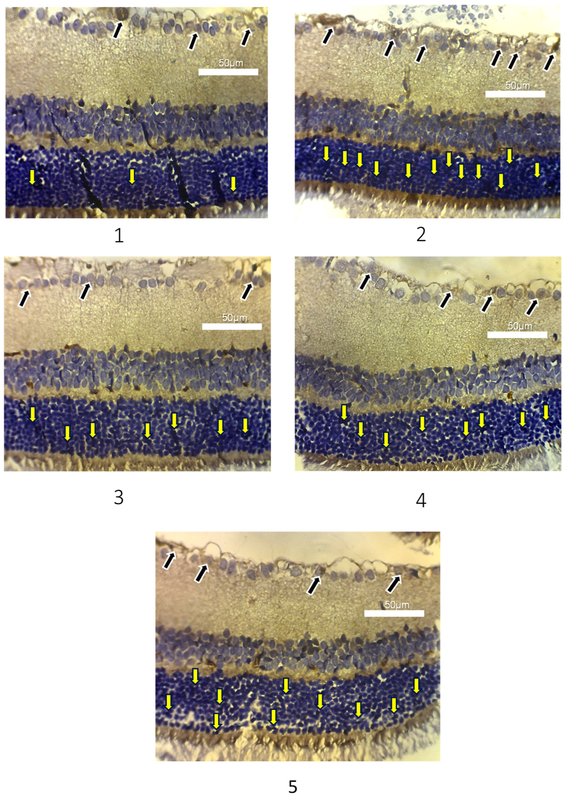 | Group | Caspase-3 Expression in Photoreceptor Cells (n) | p-Value |