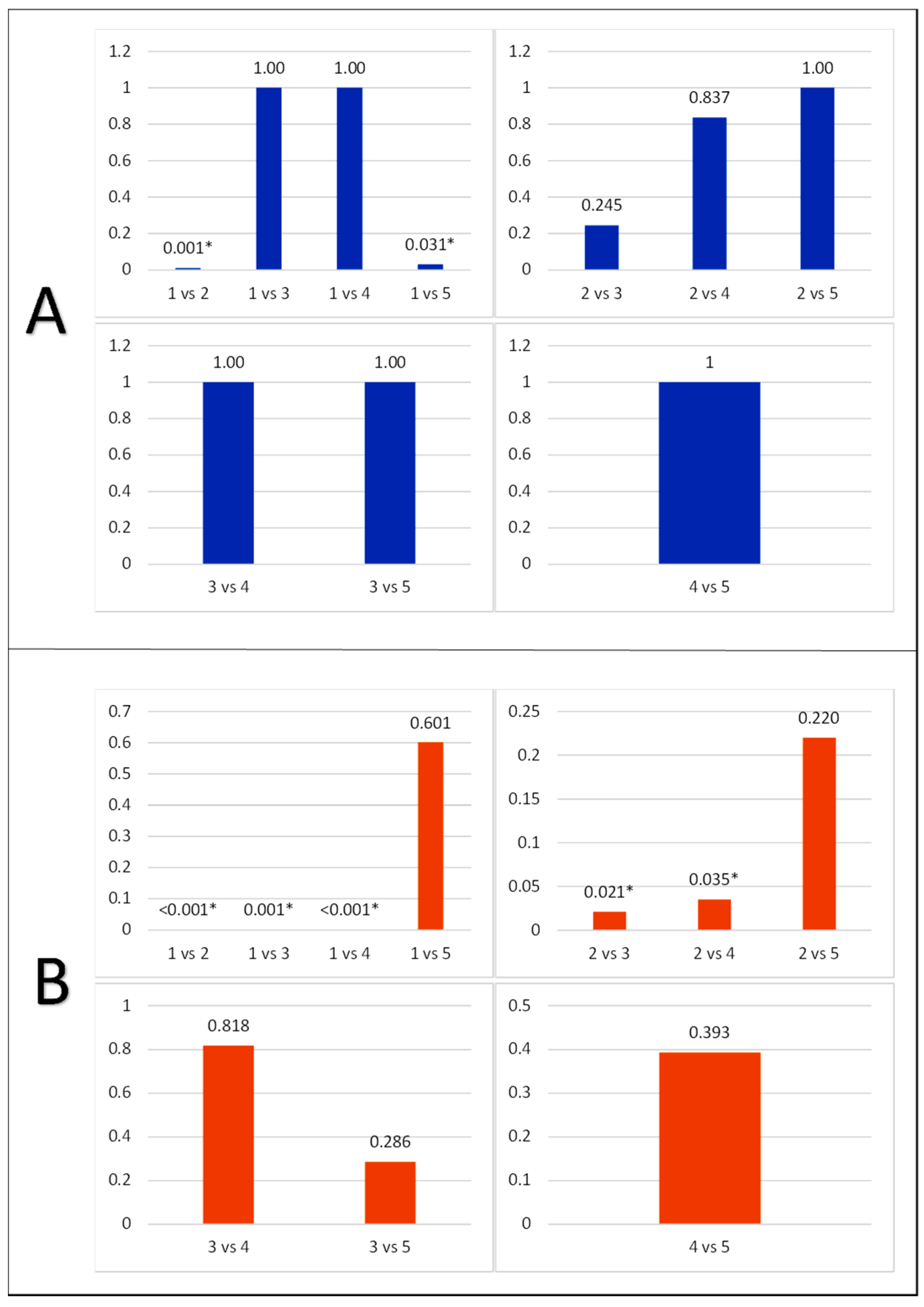 | 1 | 787.97 ± 18.77 | * 0.001 | 22.77 ± 2.63 | * 0.001 |