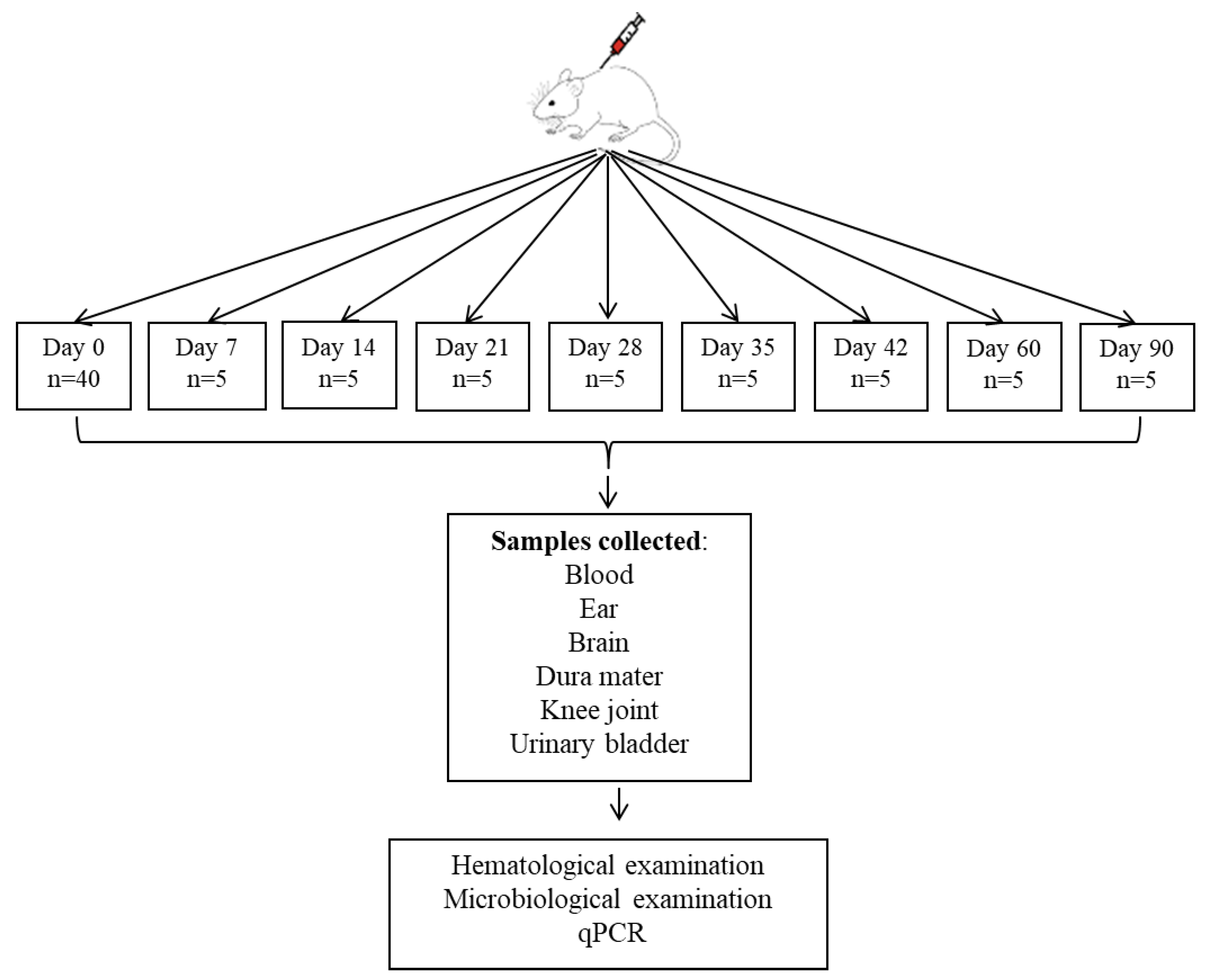 - Coman, C.; Ancuta, D.L.; Ionita, F.M.; Caracoti, I.V.; Caracoti, C.; Muntean, A.A.; Popa, M.I. Development of A Murine Model Of Neuroborreliosis Induced By Human Borrelia Strain. Sci. Work. Ser. C Vet. Med. 2024, 70, 132–138. [Google Scholar]