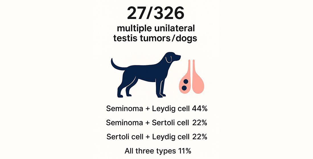 The conducted analysis indicates that multiple tumors within one or, in some instances, both testicles in dogs are not an extremely rare phenomenon [