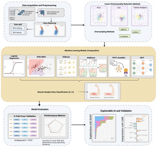 The methodology presented in this study has reproducibility, scientific validity, and results with clinical relevance, integrating advanced data analysis techniques and class balancing strategies for statistical validation. This section details the data source, cohort selection criteria, preprocessing procedures, implemented algorithms, optimization methods, and procedures to evaluate the interpretability and robustness of the models and their respective results. Figure 1 represents the abstract of the methodology.