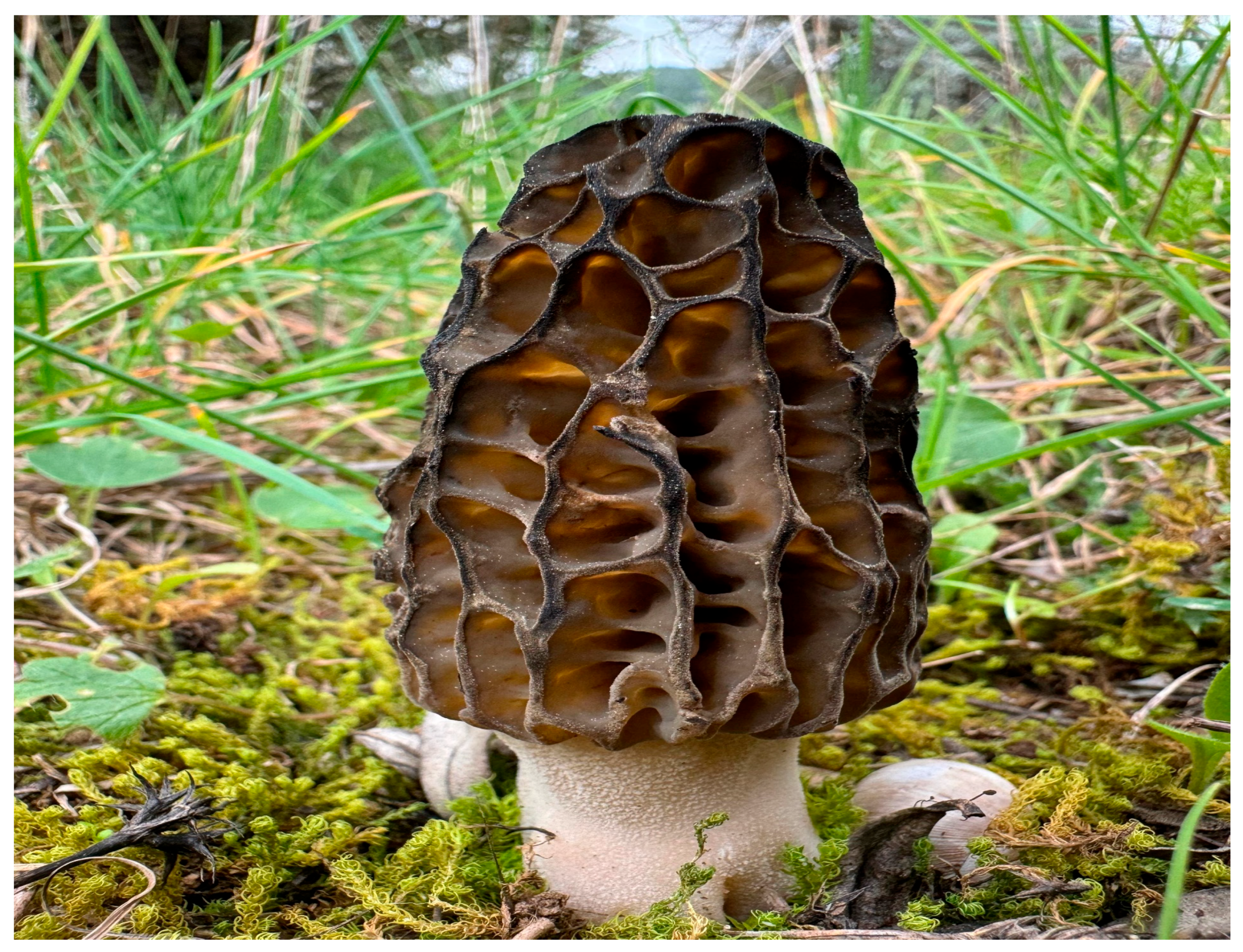 Morchella Fr. species (morels), are a type of edible mushroom that is highly valued for its distinctive flavor and appearance. Morels have a unique appearance with a honeycomb-like cap, which is usually elongated and dimpled. The color can range from light yellow to dark brown [1,2]. Morchella species typically occur in forested areas, especially in spring, usually between March and May in the Northern Hemisphere (except Morchella galilaea Masaphy & Clowez). The only species that grows in autumn is Morchella galilaea Masaphy & Clowez. The vast majority of morels are mycorrhizal fungi, meaning that they form a symbiotic relationship with the roots of certain trees [3]. Growing under certain pine trees (e.g., Morchella esculenta (L.) Pers., M. elata Fr.), morels prefer well-drained soil and some shade. They like moist soils with a pH range of 6.0 to 7.5 and not wet. However, morel mushrooms also thrive in many different areas, such as construction waste (M. importuna M. Kuo, O’Donnell & T.J. Volk), fire areas (e.g., M. eximia Boud., M. exuberans Clowez, Hugh Sm. & S. Sm.), wood stores (M. importuna), in wood shavings (M. rufobrunnea Guzmán & F. Tapia), and gypsum soil (M. steppicola Zerova), etc [4,5,6,7,8].