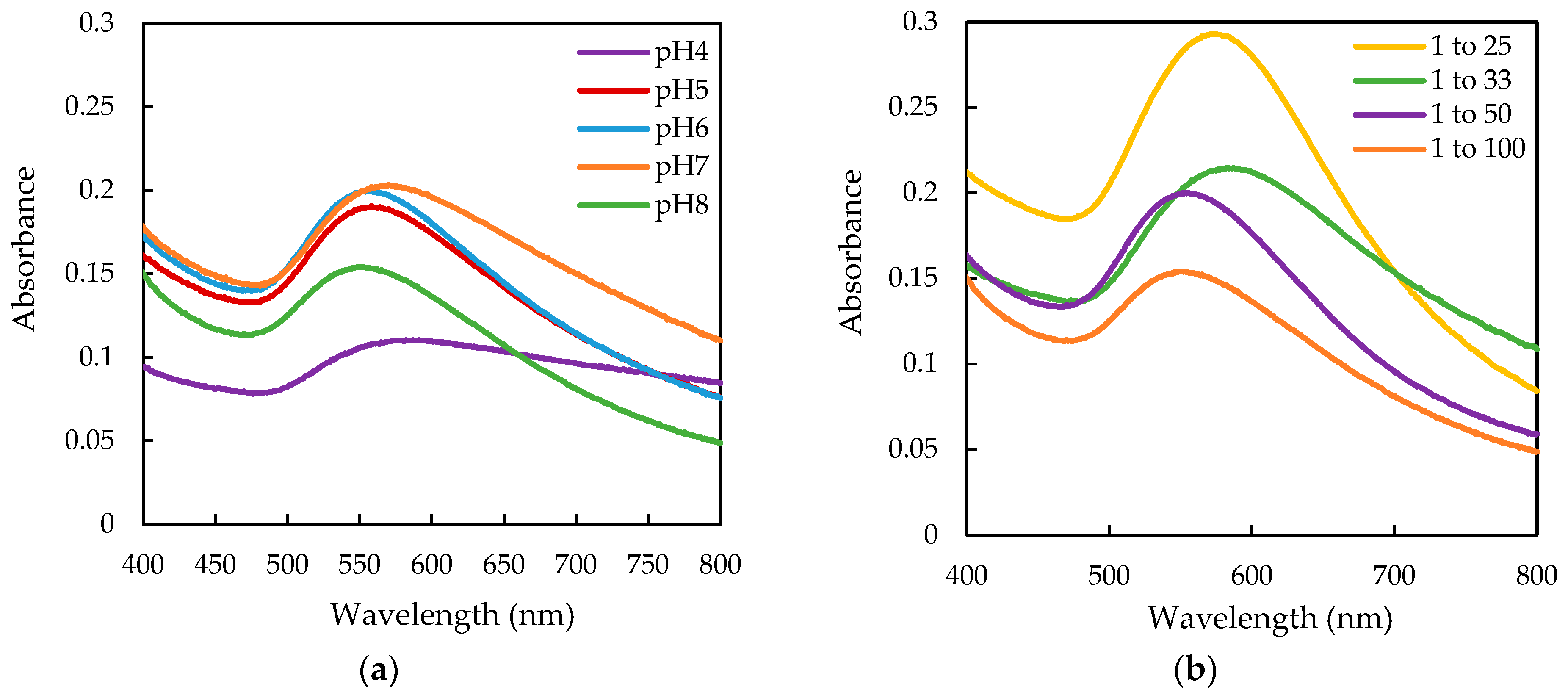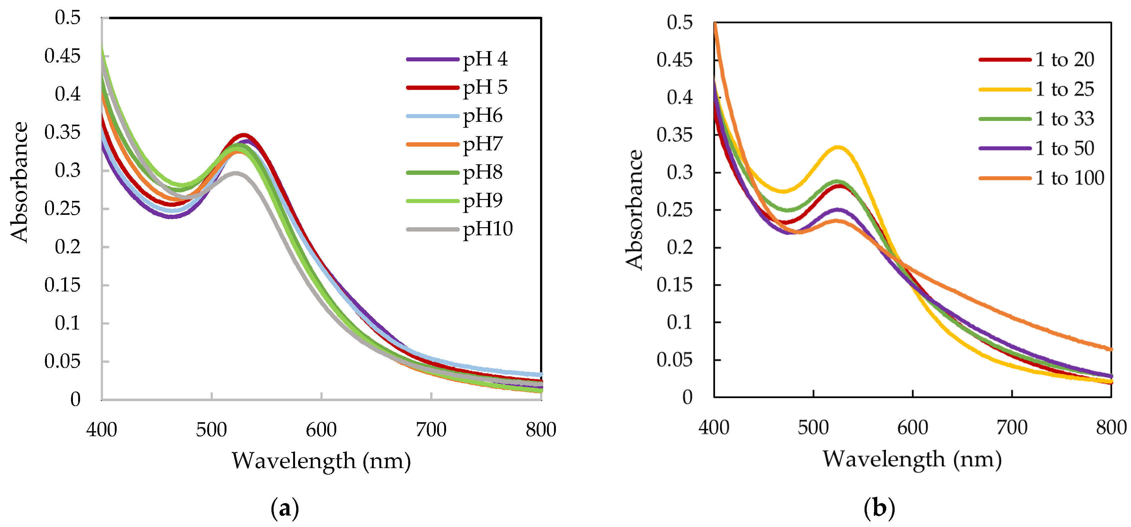 - Bano, A.; Dawood, A.; Rida; Saira, F.; Malik, A.; Alkholief, M.; Ahmad, H.; Khan, M.A.; Ahmad, Z.; Bazighifan, O. Enhancing catalytic activity of gold nanoparticles in a standard redox reaction by investigating the impact of AuNPs size, temperature and reductant concentrations. Sci. Rep. 2023, 13, 12359. [Google Scholar] [CrossRef]