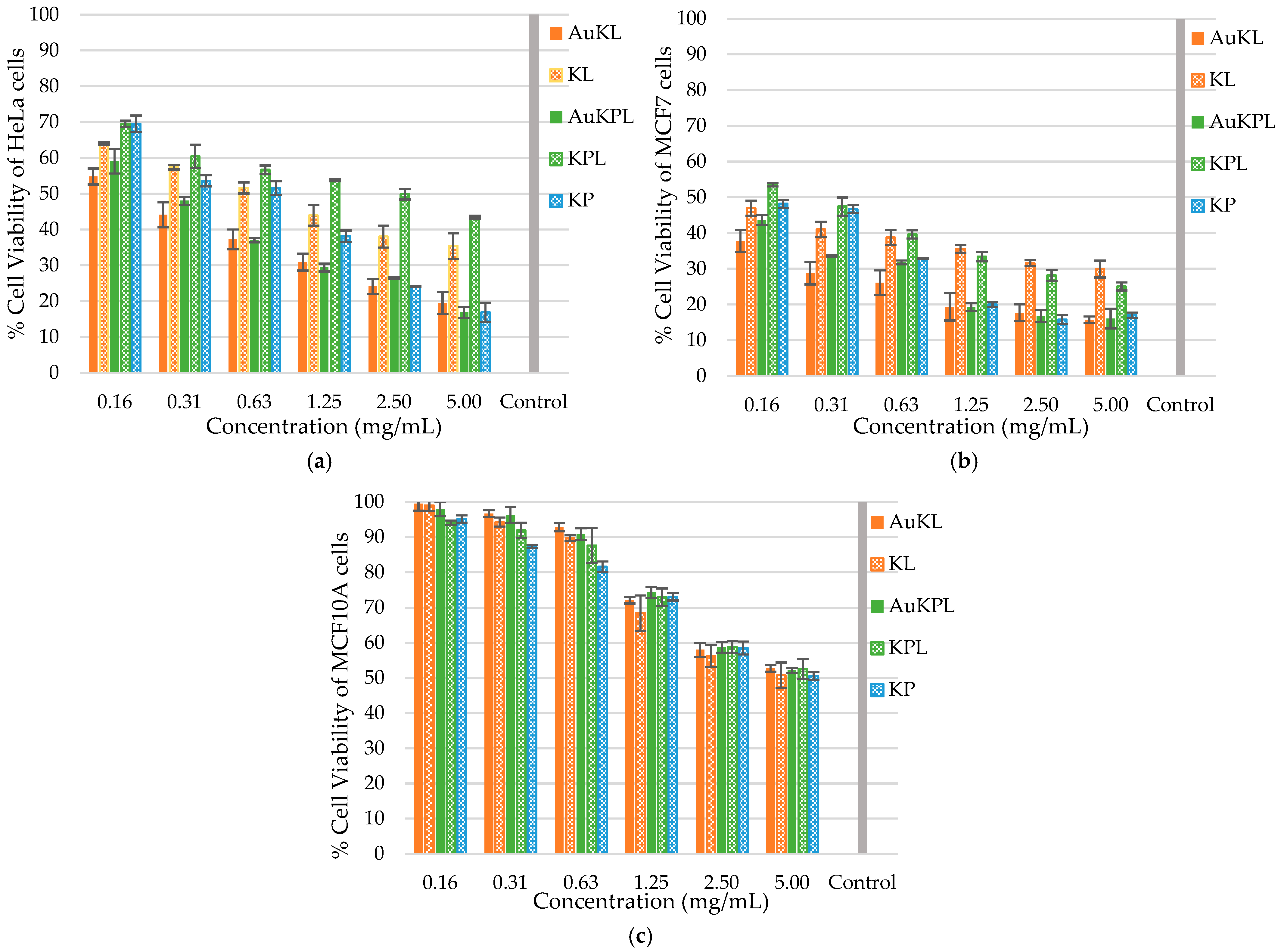 - Patil, M.P.; Ngabire, D.; Thi, H.H.P.; Kim, M.-D.; Kim, G.-D. Eco-friendly Synthesis of Gold Nanoparticles and Evaluation of Their Cytotoxic Activity on Cancer Cells. J. Clust. Sci. 2017, 28, 119–132. [Google Scholar] [CrossRef]