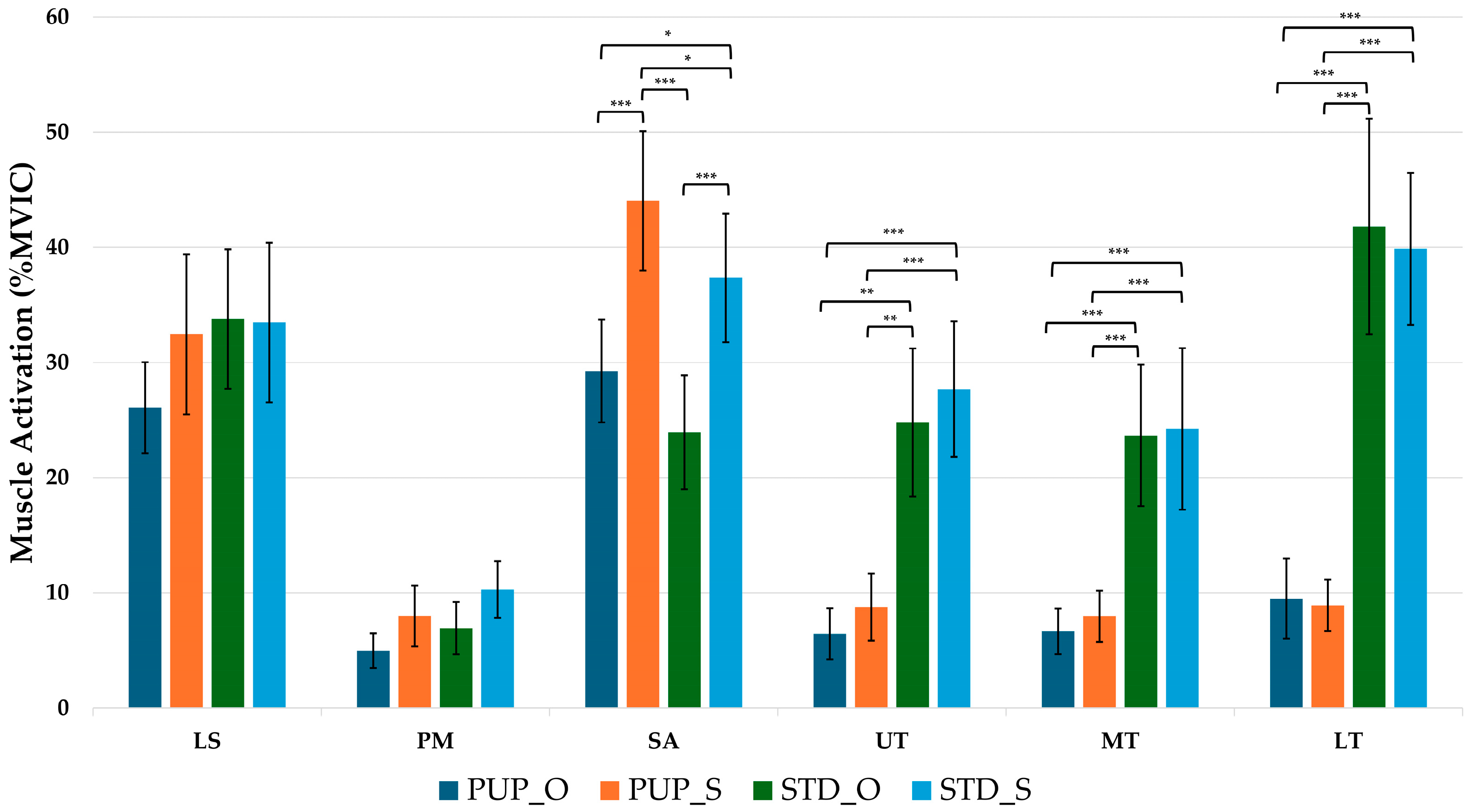 3.1. Muscle Activation During the Scapular Protraction Phase