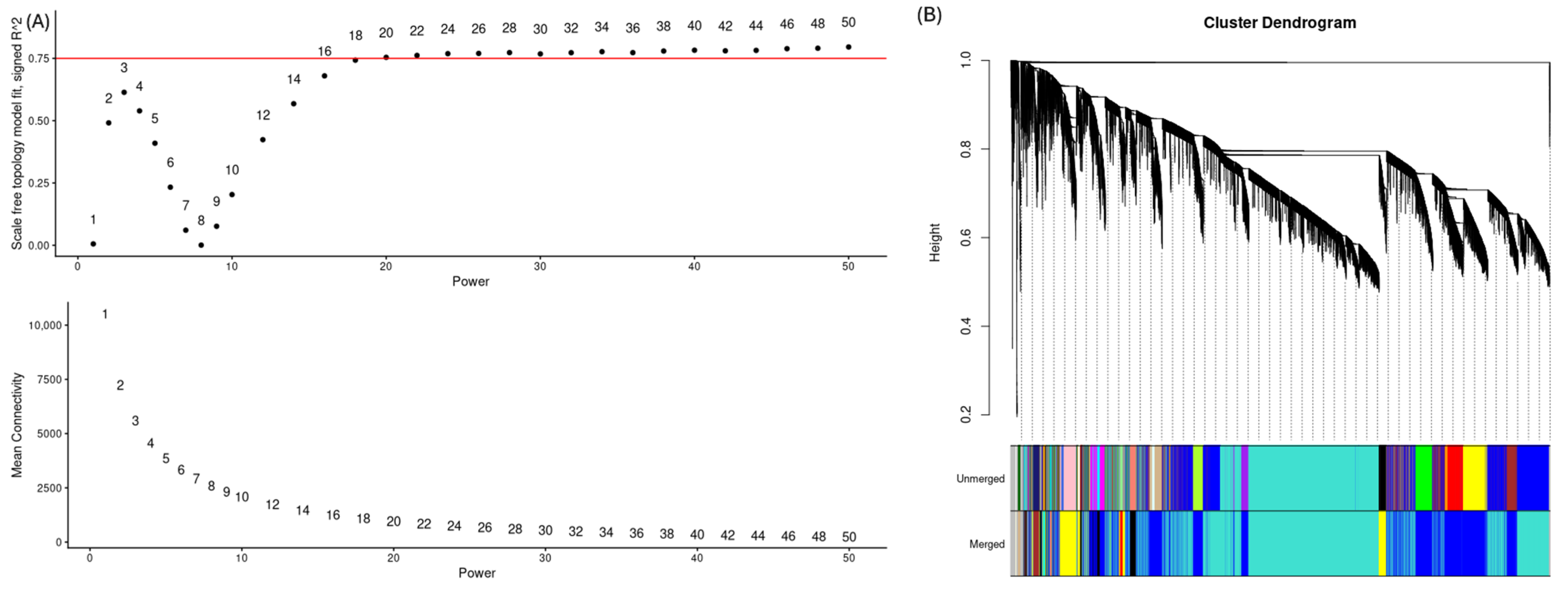 - Langfelder, P.; Horvath, S. WGCNA: An R package for weighted correlation network analysis. BMC Bioinform. 2008, 9, 559. [Google Scholar] [CrossRef]