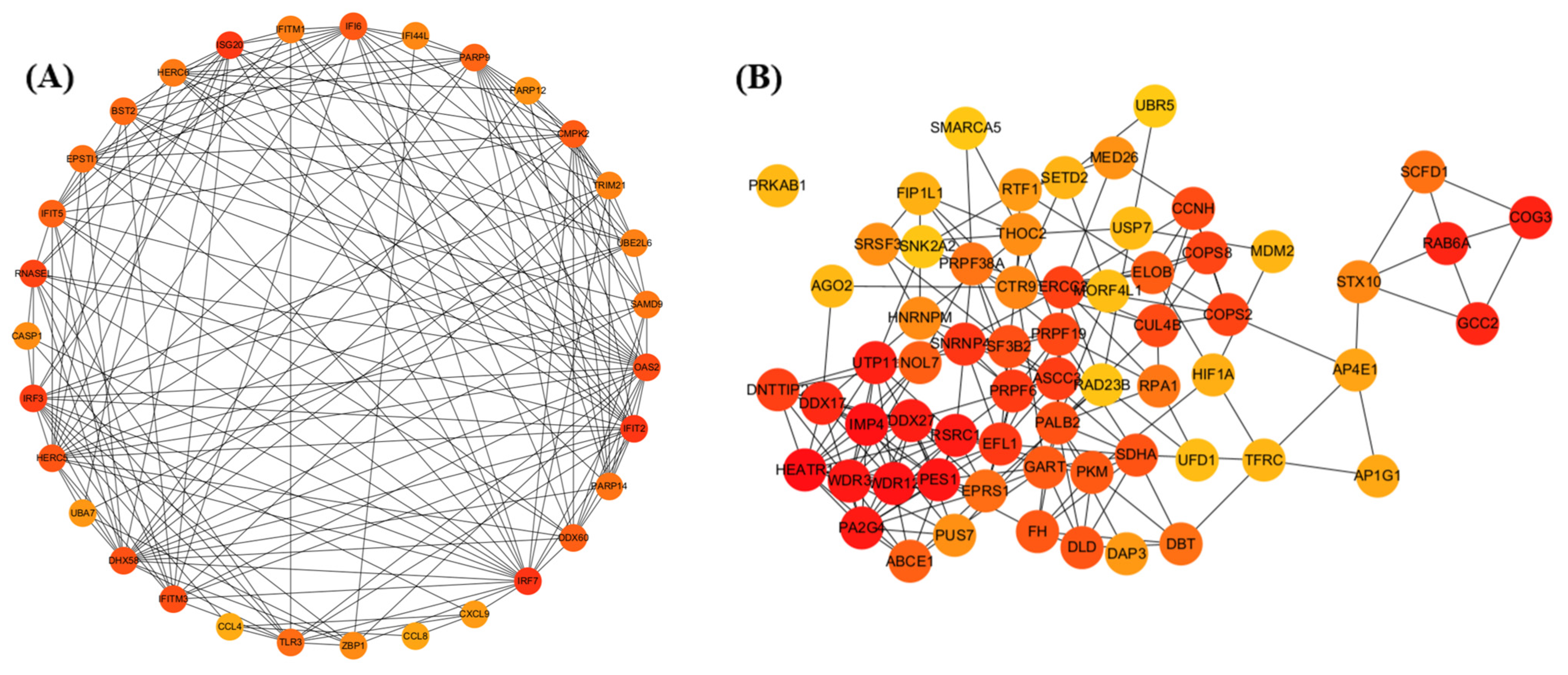 - Chin, C.H.; Chen, S.H.; Wu, H.H.; Ho, C.W.; Ko, M.T.; Lin, C.Y. cytoHubba: Identifying hub objects and sub-networks from complex interactome. BMC Syst. Biol. 2014, 8 (Suppl. S4), S11. [Google Scholar] [CrossRef] [PubMed]