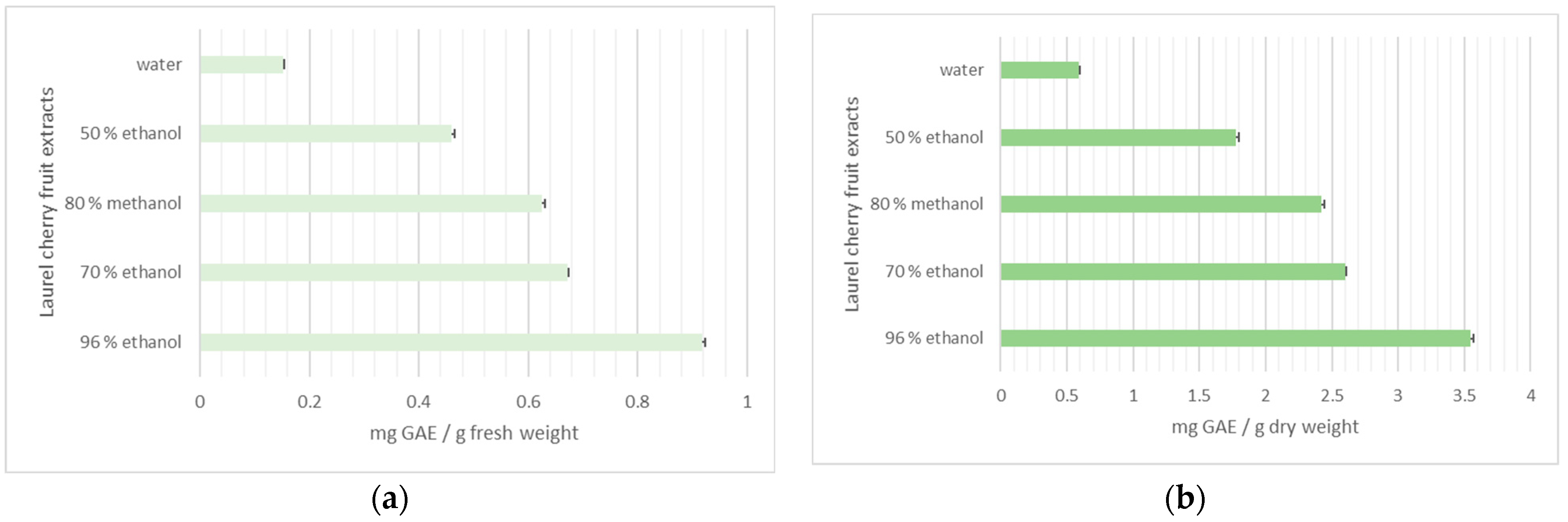 | 96% ethanol | 5.90 a ± 0.54 | 8.28 a ± 0.16 | 6.79 a ± 0.23 |