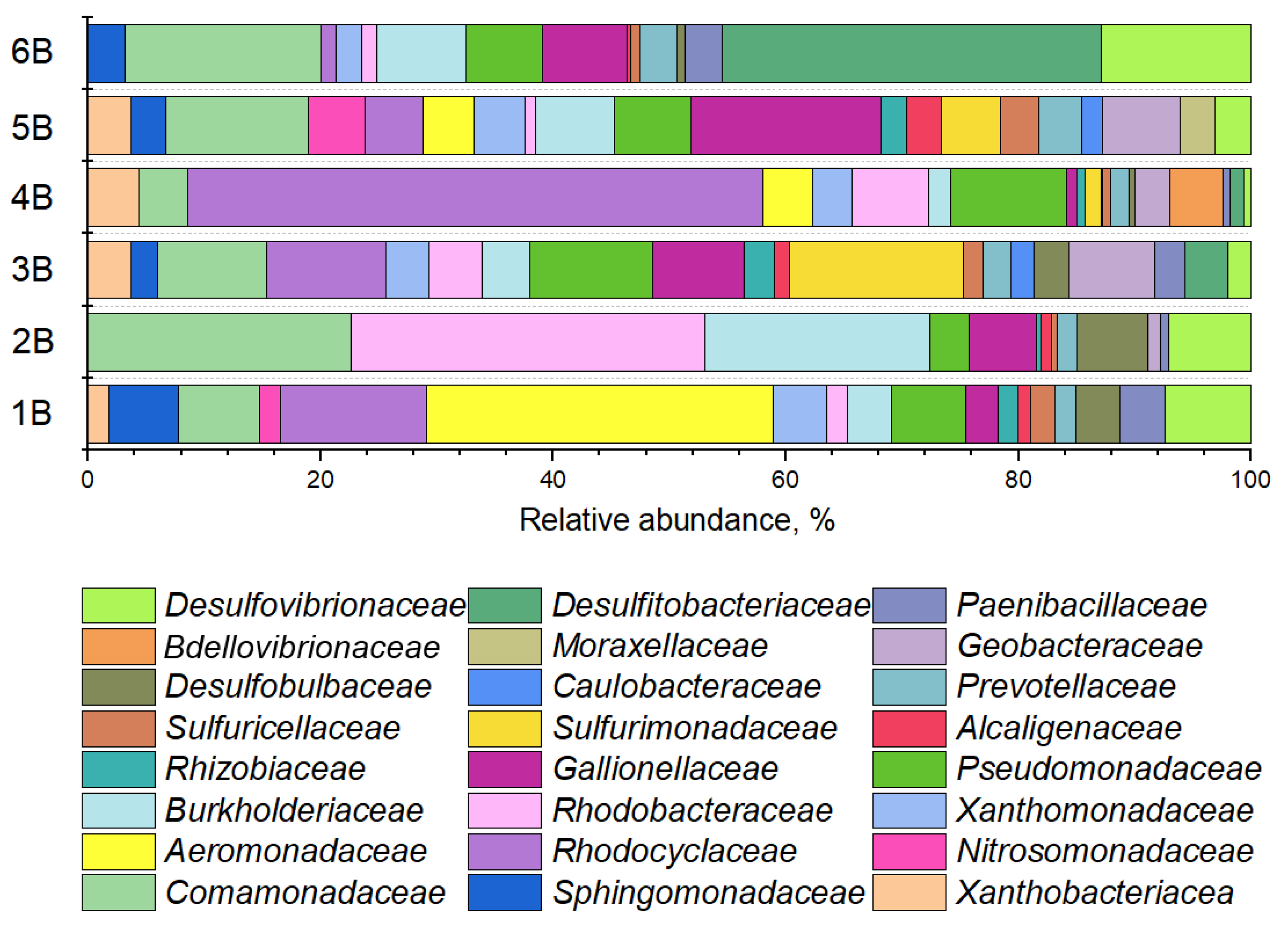 3.2.3. Phylogenetic Composition of Polluted Samples