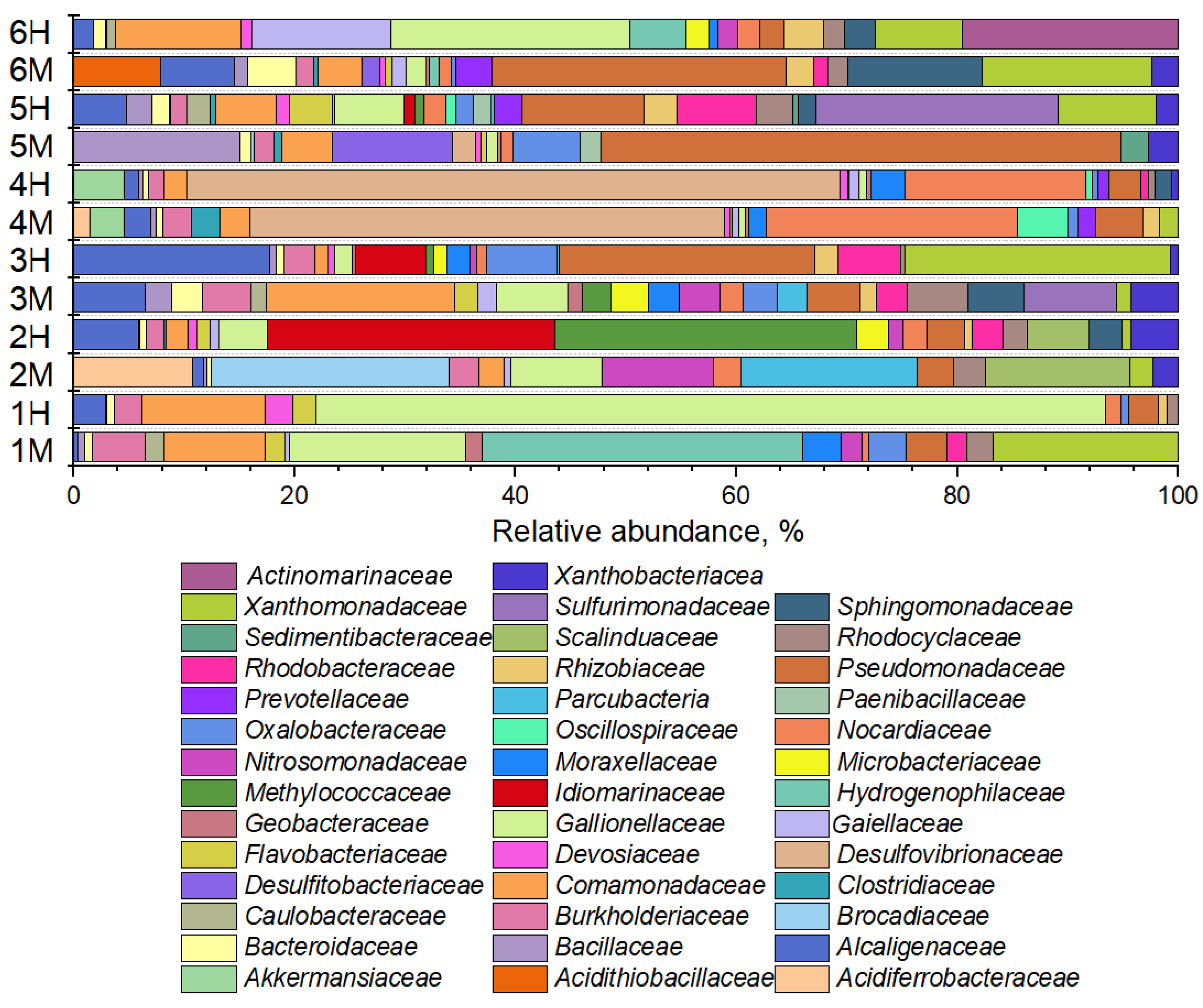 - Ihara, H.; Hori, T.; Aoyagi, T.; Hosono, H.; Takasaki, M.; Katayama, Y. Stratification of Sulfur Species and Microbial Community in Launched Marine Sediment by an Improved Sulfur-Fractionation Method and 16S RRNA Gene Sequencing. Microbes Environ. 2019, 34, 199–205. [Google Scholar] [CrossRef]