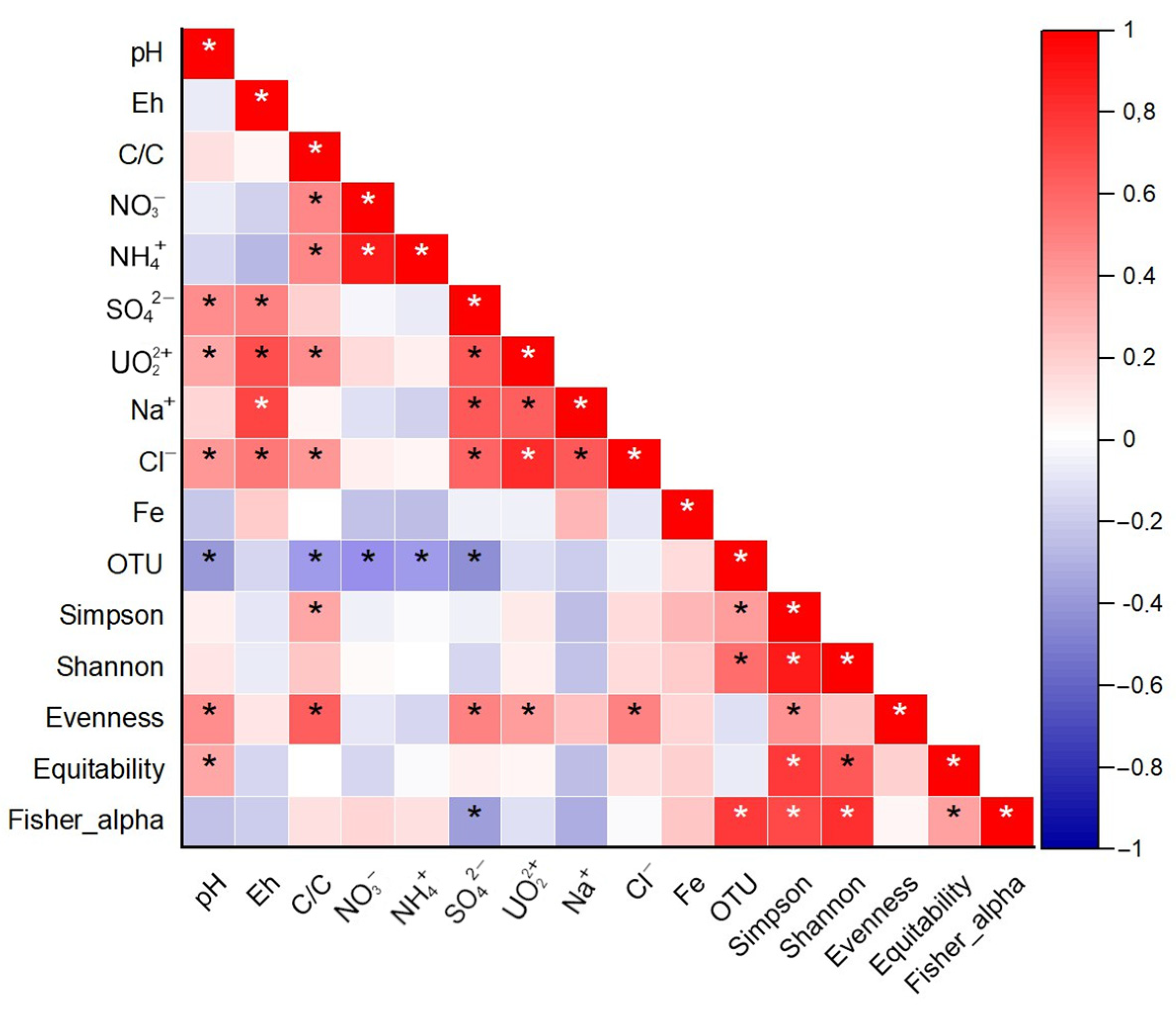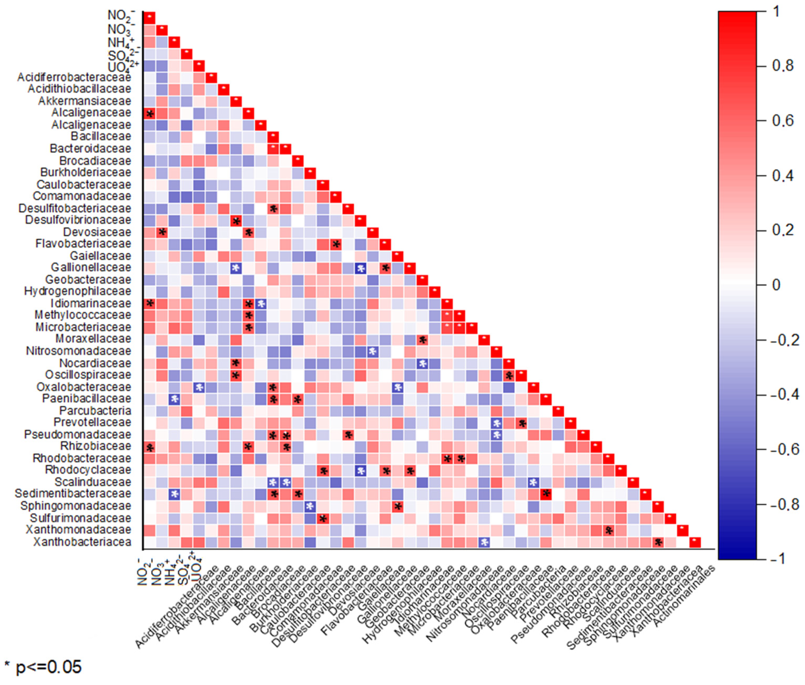 3.4. Correlation Analyses of Hydrochemical and Microbiological Parameters