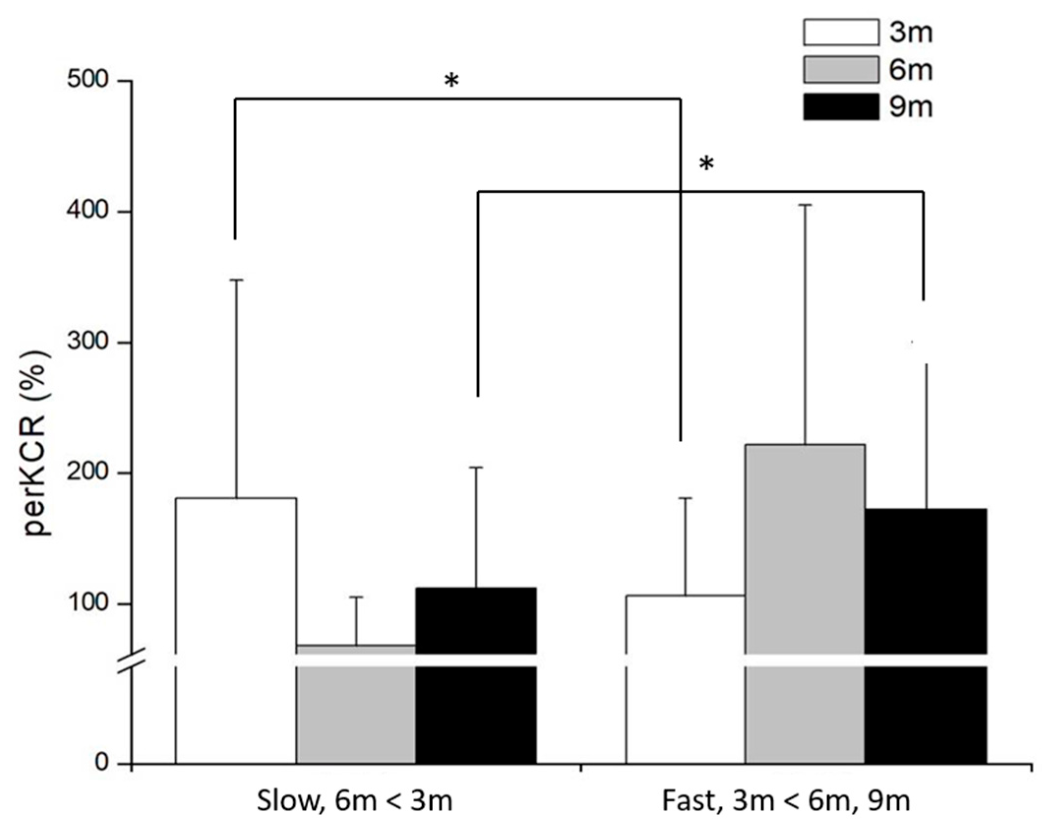 | PushKCR (%) | p = 0.004 * | Slow | 189 ± 78 | 146 ± 110 | 170 ± 84 |