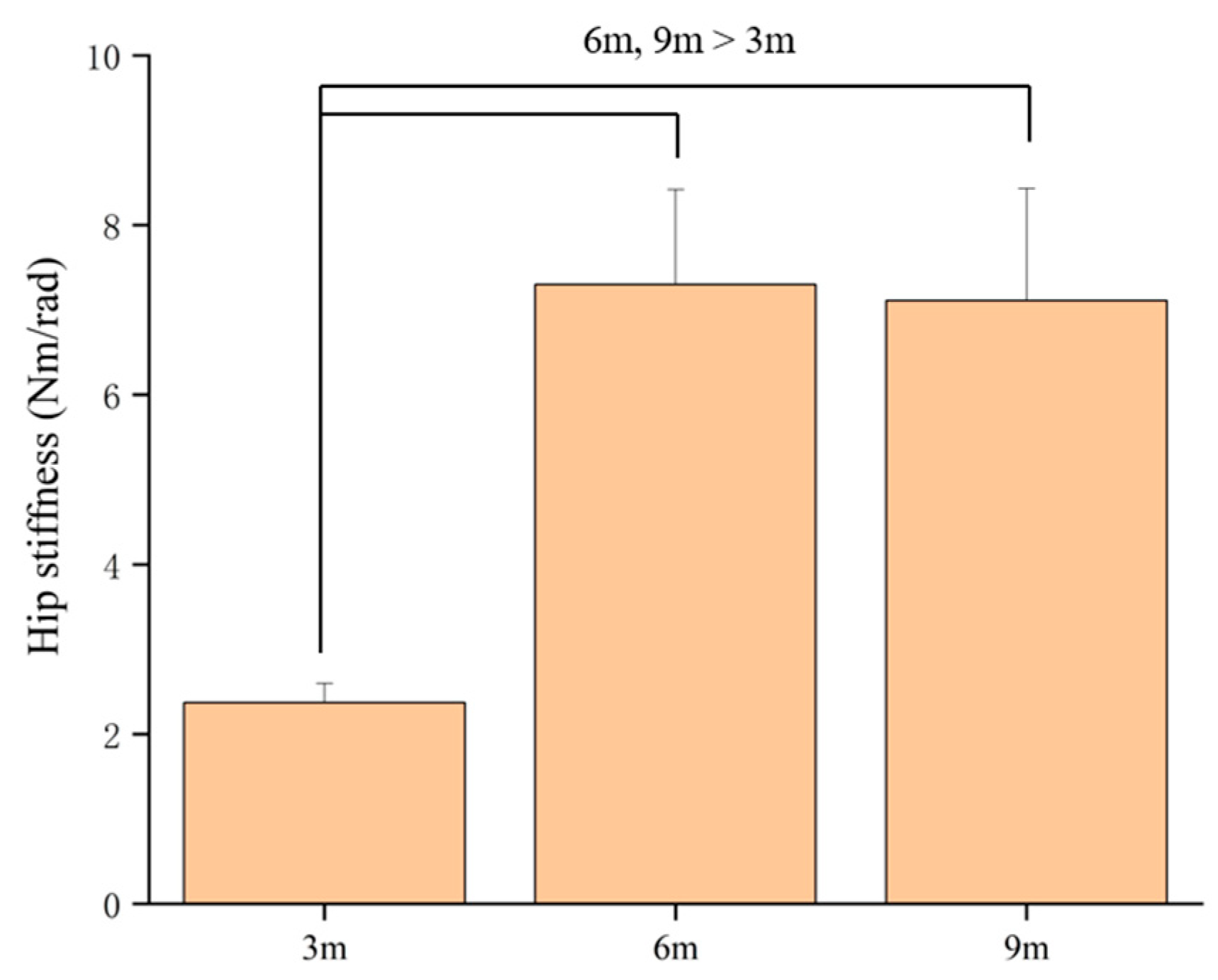 | Eccentric | Hip | 0.001 * | 0.342 | 0.12 | 6 m, 9 m > 3 m |