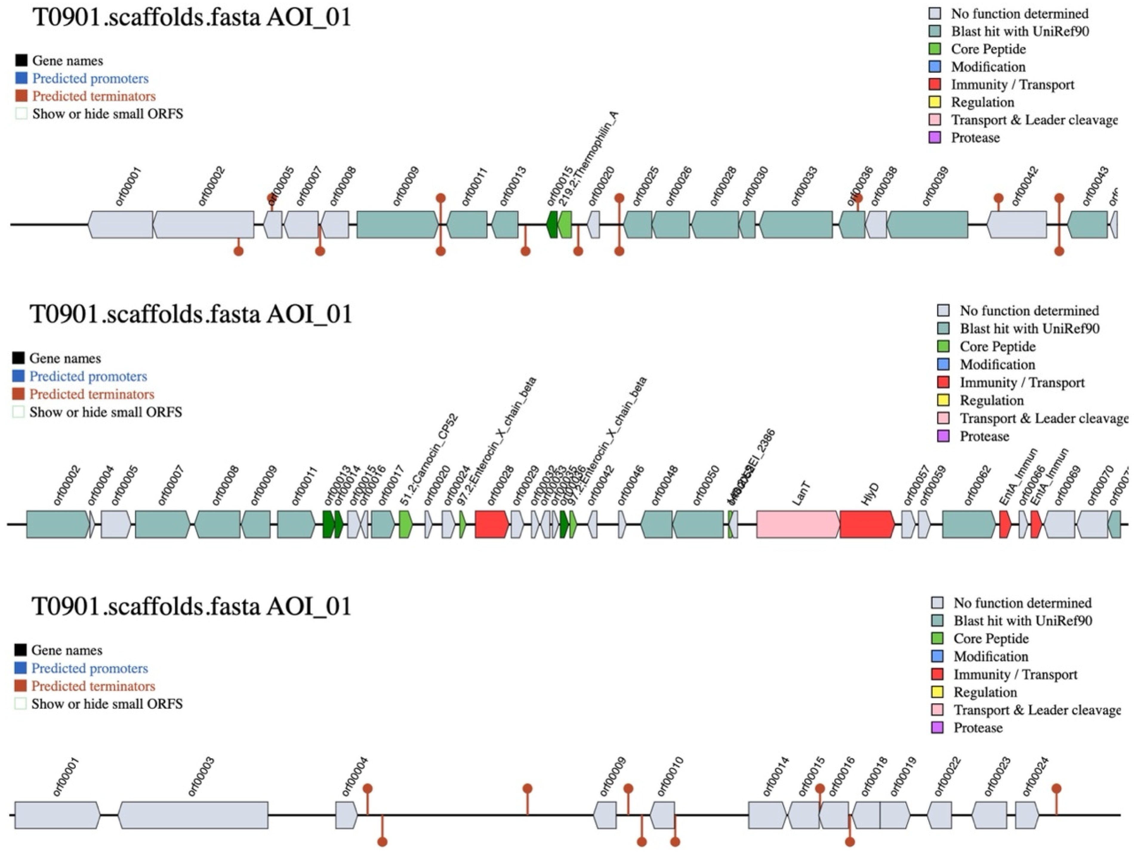 - van Heel, A.J.; de Jong, A.; Song, C.X.; Viel, J.H.; Kok, J.; Kuipers, O.P. BAGEL4: A user-friendly web server to thoroughly mine RiPPs and bacteriocins. Nucleic Acids Res. 2018, 46, W278–W281. [Google Scholar] [CrossRef]