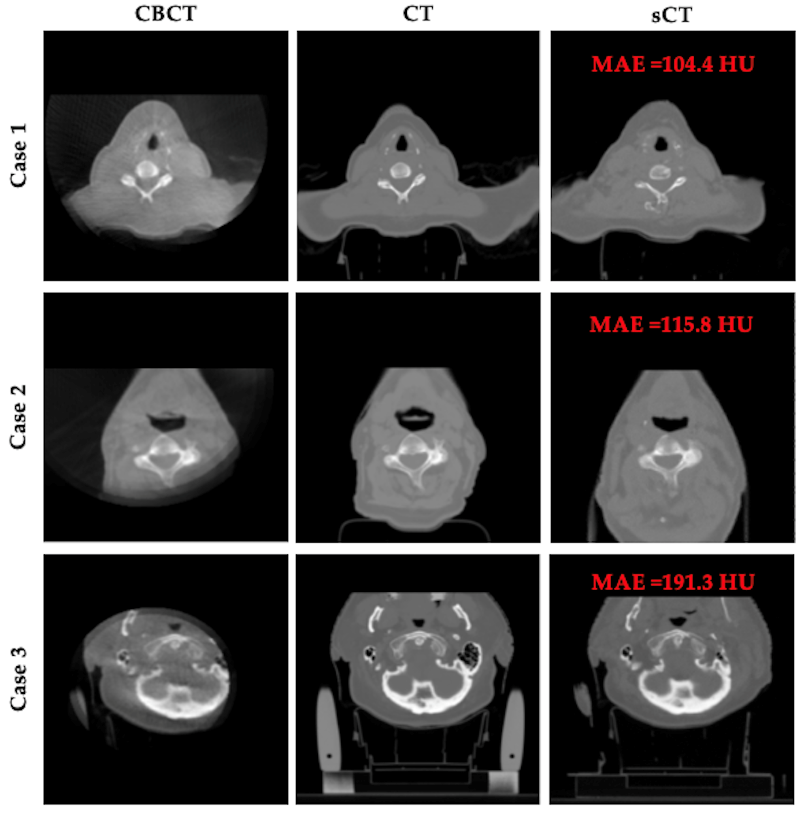 - CBCT: Raw CBCT images directly compared with the ground-truth CT, without any synthesis.