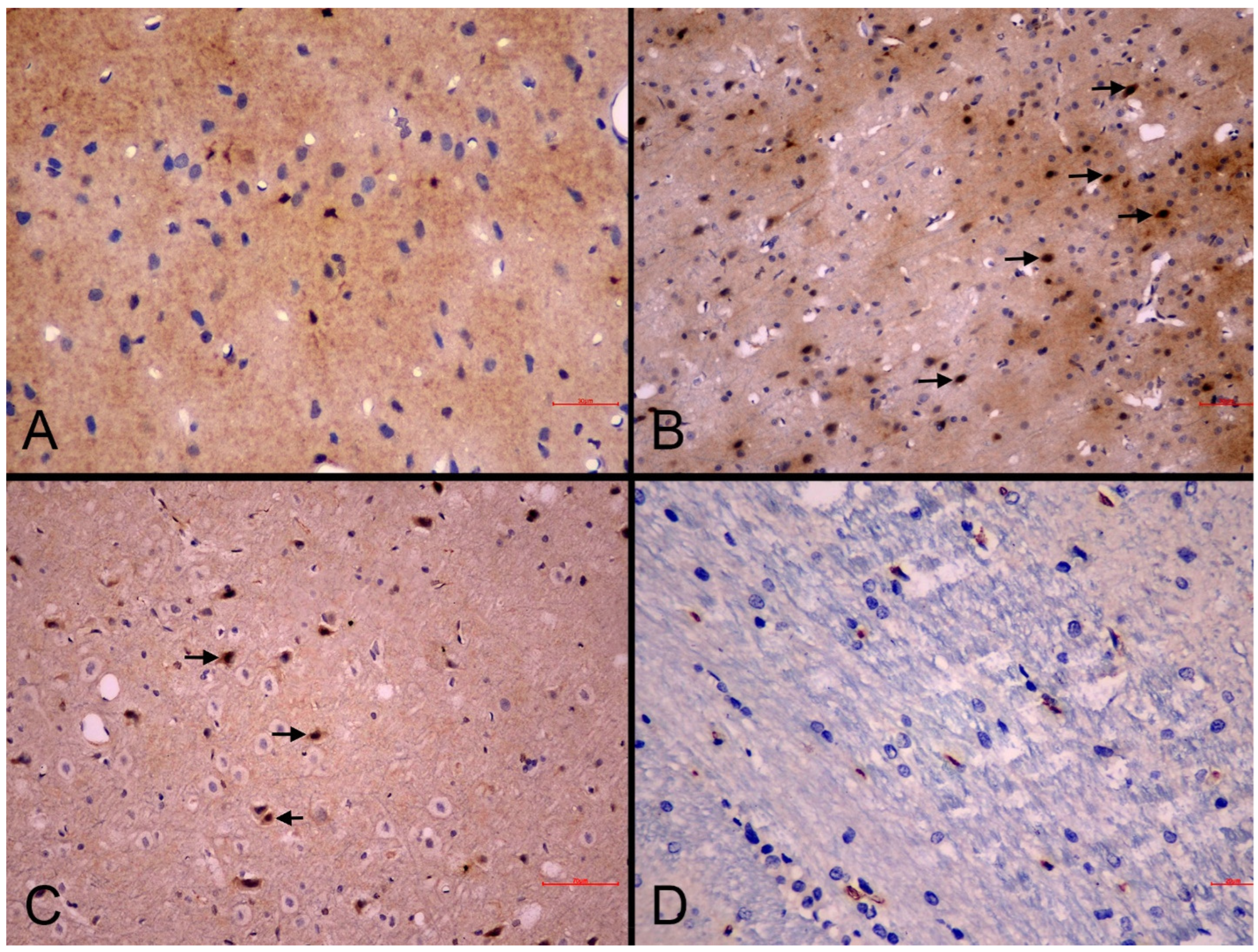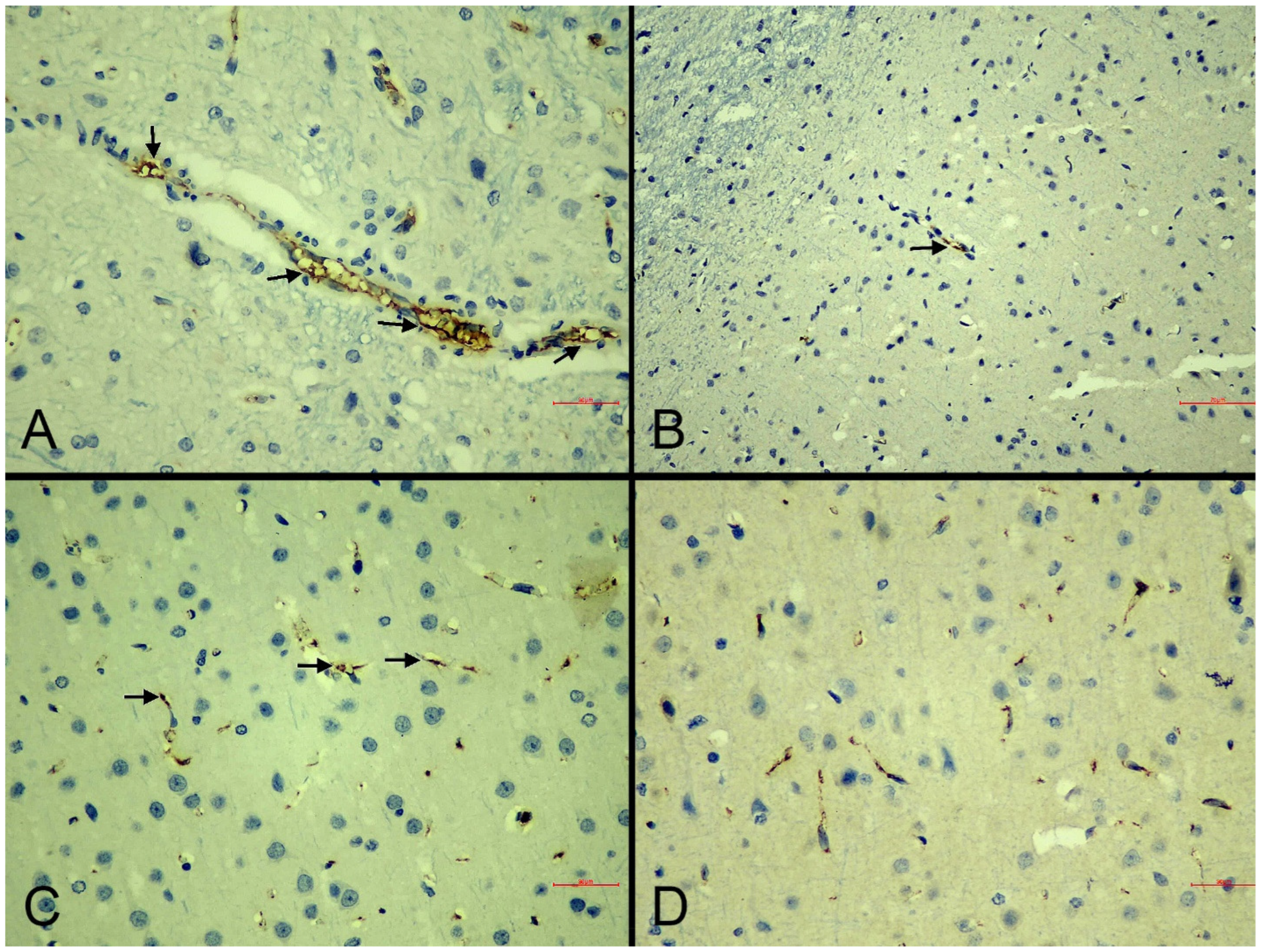 | Cytoplasmic staining in astrocytes, microglia, and endothelial cells | Sham-control | +1 | +1 |