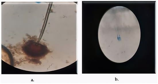 Hyphal and spore structures were analyzed using light microscopy. Slide cultures were prepared to observe reproductive features, including conidiophores and sporangia. Colony morphology [pigmentation, texture] and purity were documented via macroscopic and microscopic examination [10].