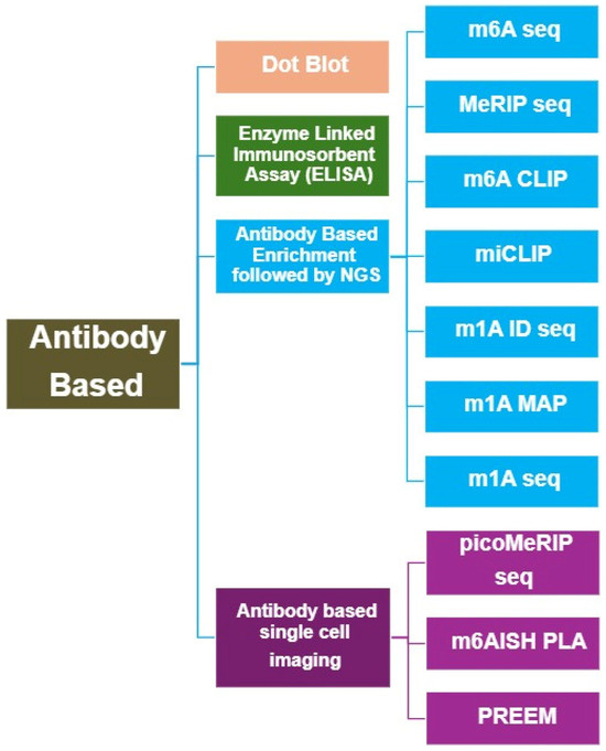Specific antibodies for detecting RNA modifications were first proposed and successfully implemented in the late 1970s [9]. Since then, the development of high-affinity, modification-specific antibodies has greatly advanced the ability to detect, enrich, and map RNA modifications across different RNA species (Table 1). Antibody-based methods remain among the most widely used experimental strategies for RNA modification analysis due to their simplicity, versatility, and compatibility with various downstream applications (Figure 2).