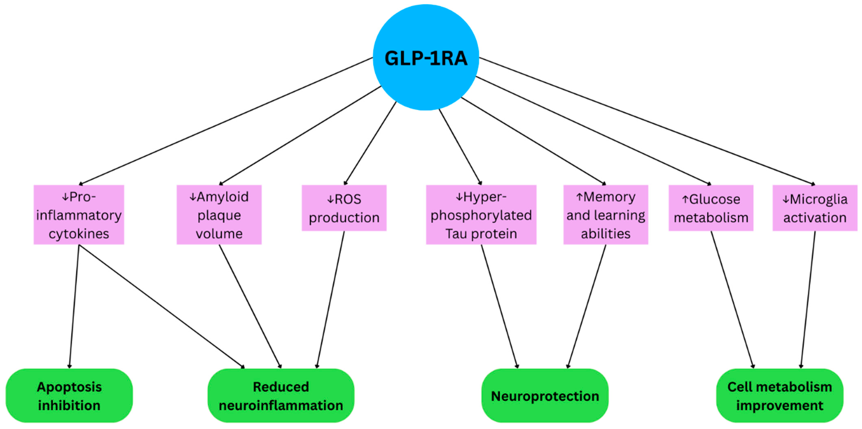 2.1. GLP-1RAs in Alzheimer’s Disease
