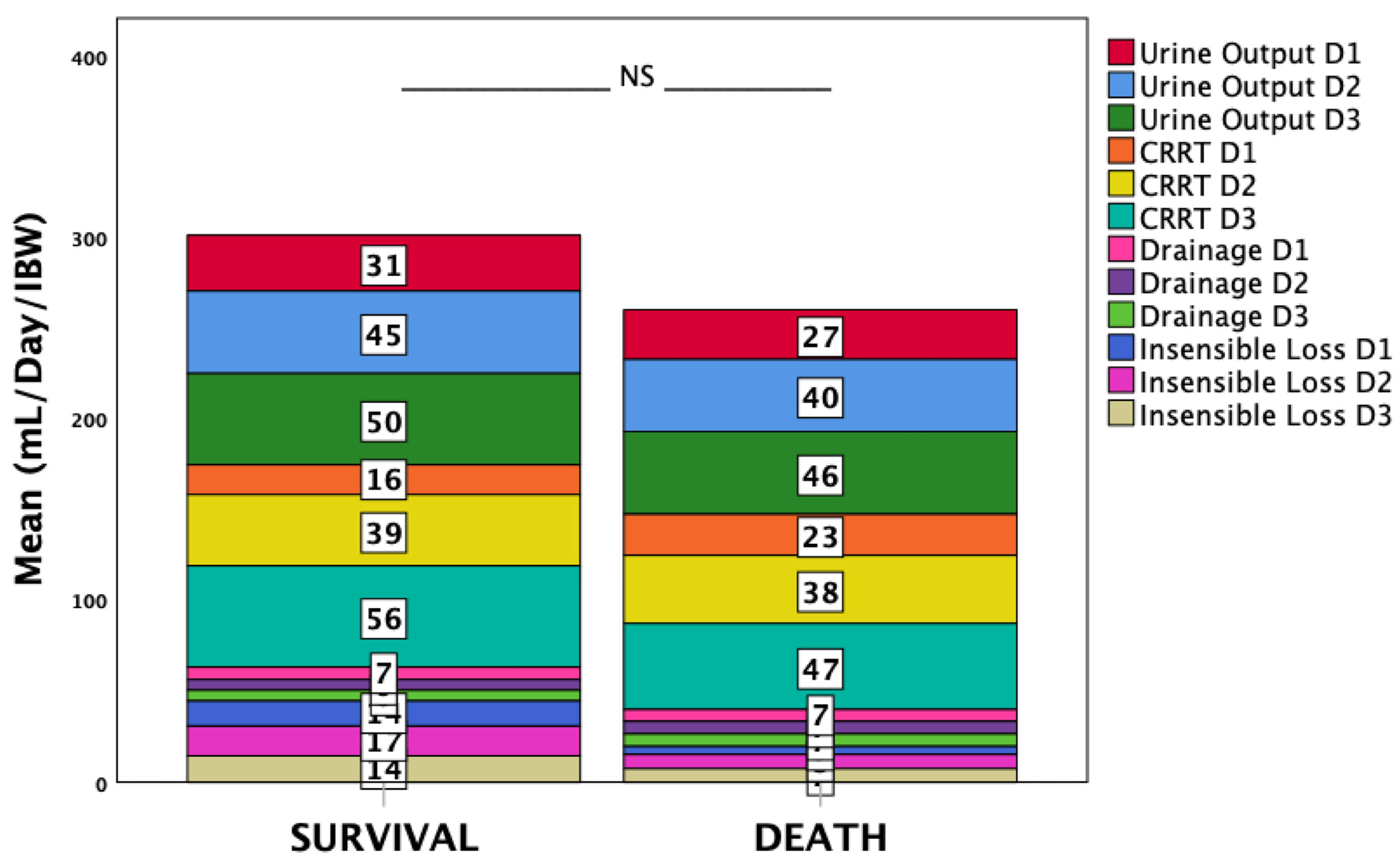 | Total Output (mL/IBW), mean ± SD | 148.9 ± 60.3 | 152.7 ± 62.0 | 140.5 ± 54.1 | 0.137 |
