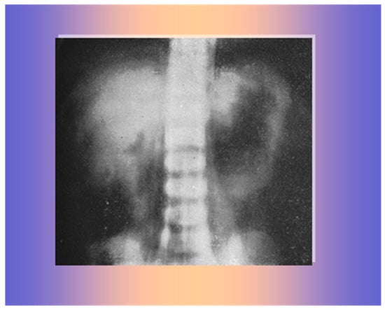 An abdominal X-ray showed a large mass likely of adrenal origin above the right kidney (Figure 6).