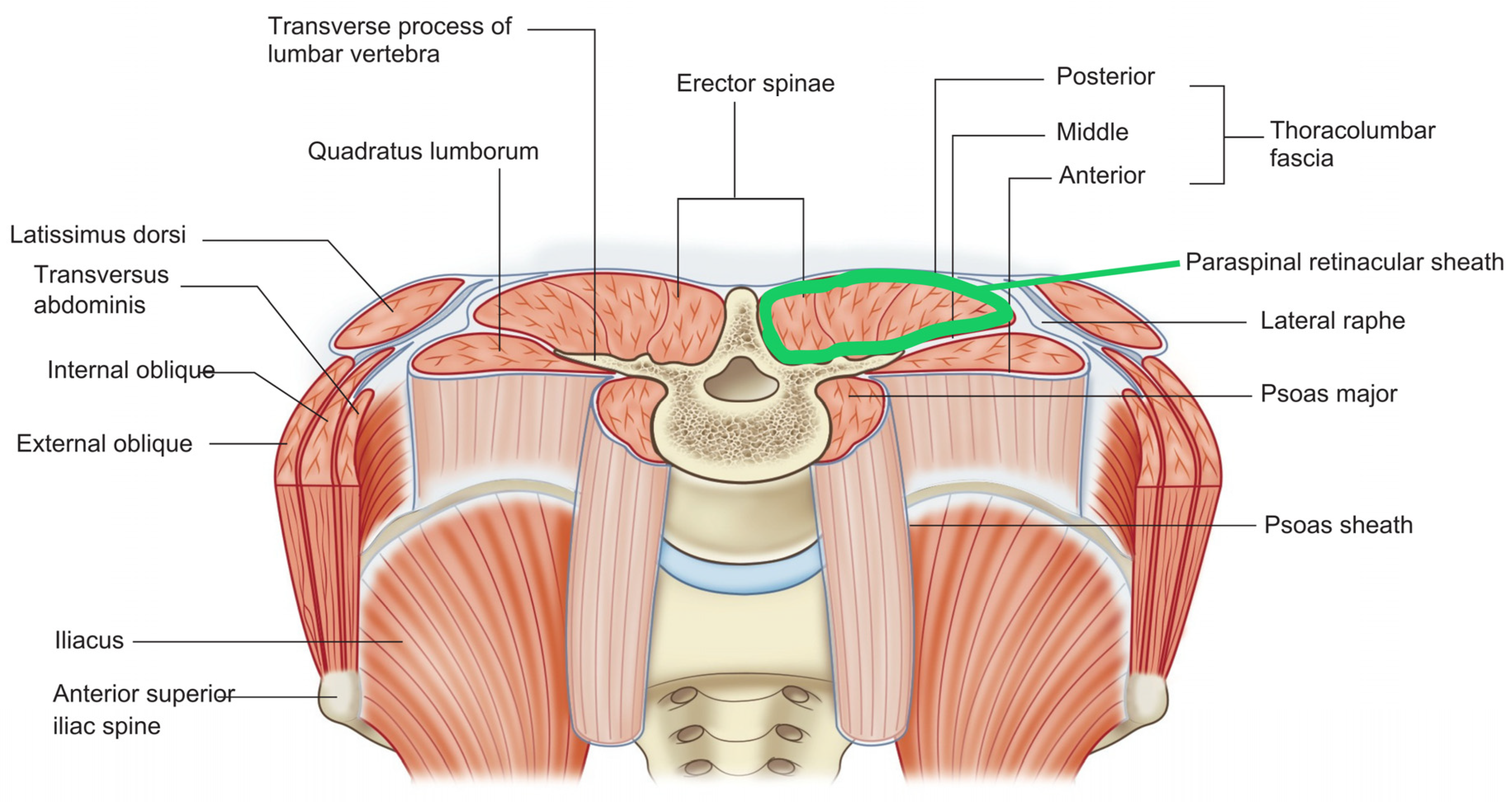 - Schuenke, M.D.; Vleeming, A.; Van Hoof, T.; Willard, F.H. A Description of the Lumbar Interfascial Triangle and Its Relation with the Lateral Raphe: Anatomical Constituents of Load Transfer through the Lateral Margin of the Thoracolumbar Fascia. J. Anat. 2012, 221, 568–576. [Google Scholar] [CrossRef] [PubMed]