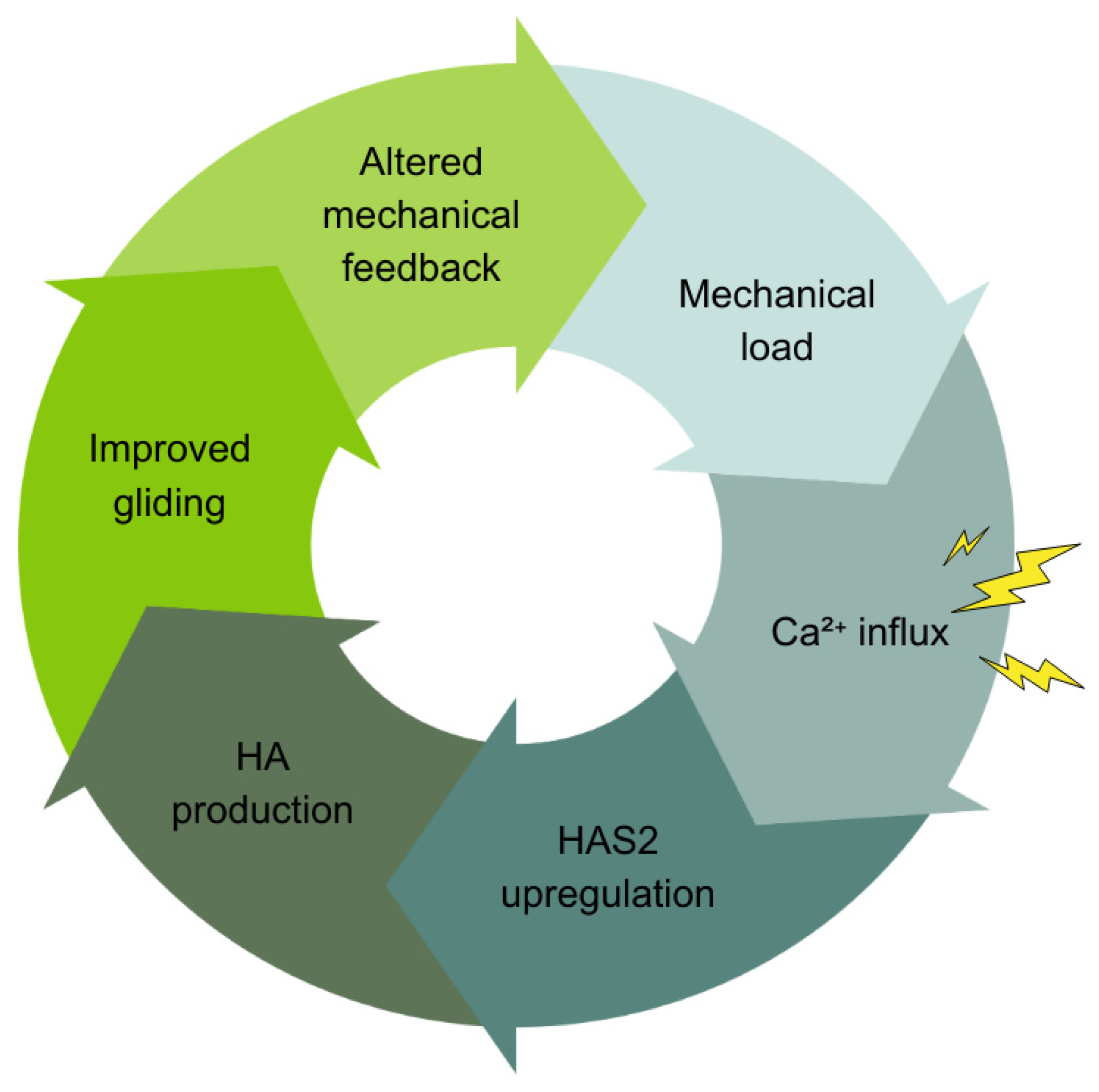 3.10.1. Mechanotransduction and HA Production: The CHA Cycle