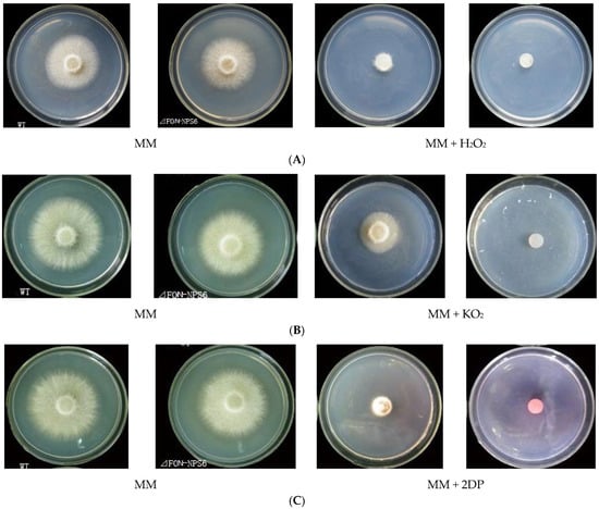 The mutant of Xanthomonas oryzae pv. oryzae, known as the fur (ferric uptake regulator) variant, which exhibited an overproduction of extracellular siderophores, also demonstrated reduced virulence in rice and heightened sensitivity to H2O2 [28,29]. It has also been reported that the deletion of NPS6 reduces the pathogenicity of heterotrophic molds and Fusarium graminearum on maize and renders maize insensitive to H2O2 [30,31]. We found that FoN-NPS6 exhibits hypersensitivity to H2O2 and the superoxide generator KO2. Thus, the role of FoNPS6 in this characteristic function is similar to its role in Fusarium graminearum, as described above.