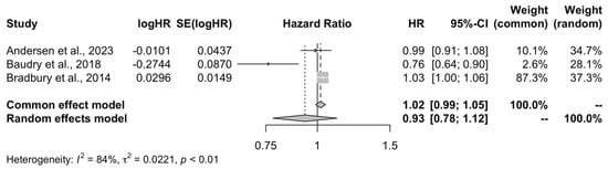| Overall cancer | 0.99 (0.91–1.08) | 0.76 (0.64–0.90) | 1.03 (1.00–1.06) |