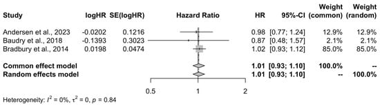 | Colorectal cancer | 0.98 (0.77–1.24) | 0.87 (0.45–1.57) | 1.02 (0.93–1.12) |
