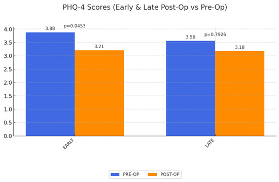 PHQ-4 Depression Scores: The depression scores decreased significantly in the short term but did not sustain this improvement over time, aligning with the broader trend of diminishing long-term QoL (Figure 4).
