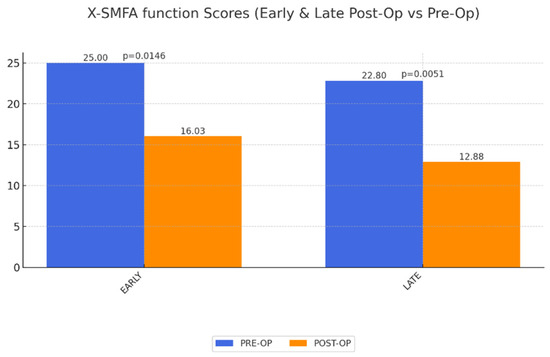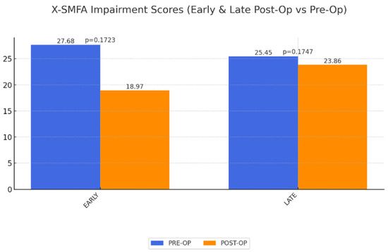 X-SMFA Body Function Scores: A significant improvement in body function was observed in the long term, though the impairment scores remained unchanged, suggesting patients gained functional ability but still faced some physical limitations, potentially related to prior obesity-related health conditions (Figure 5 and Figure 6).