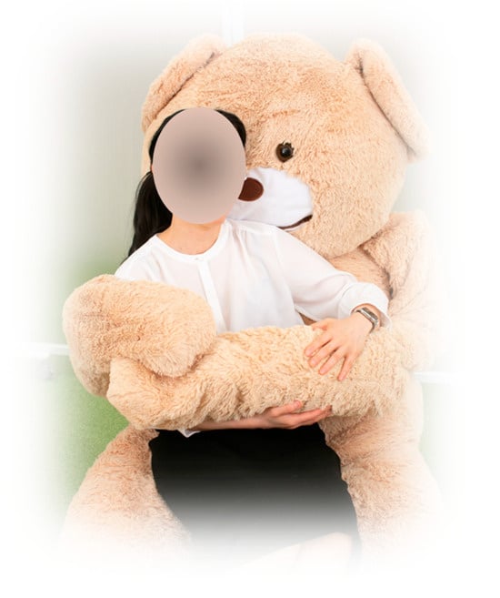 The communication robot used in this study, Moffuly, is shown in Figure 2. Moffuly is a modified robotic bear designed to perform comforting behaviors, including preprogrammed hugging []. The robot was chosen for its ability to perform these comforting behaviors, with a particular focus on its hugging action, which was hypothesized to influence pain perception and hormonal responses. While Moffuly is also capable of engaging in conversations, this component was included during the familiarization phase to reduce novelty effects and ensure participant comfort with the robot. The robot’s human-like size and design were secondary factors intended to enhance the sense of a social presence, further supporting the study’s goal of evaluating the effects of physical and emotional interactions on pain alleviation.