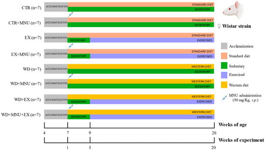 Silva J, Azevedo T, Ferreira R, Neuparth MJ, Seixas F, Ginja M, Pires MJ, Faustino-Rocha AI, Duarte JA, Oliveira PA. The Impact of a Western Diet and Resistance Training in a Rat Model of Mammary Cancer. Life. 2025; 15(2):250. https://doi.org/10.3390/life15020250