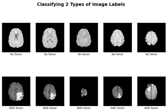 Figure 2 shows that images depicting no tumor typically reveal a serene landscape of brain tissue, characterized by uniform intensity and well-defined anatomical structures. MRI images exhibiting tumors offer a stark contrast. Within these scans, areas of heightened intensity or irregular masses emerge, signaling the presence of pathological growths. These tumors may manifest as distinct lesions, irregular masses, or regions of increased signal intensity, disrupting the otherwise orderly landscape of brain tissue. Notably, the presence of tumors often induces observable changes in adjacent structures, which may appear compressed, displaced, or distorted. By discerning these visual cues, healthcare professionals can effectively differentiate between images with no tumor and those with tumors, facilitating accurate diagnosis and informed treatment decisions for patients