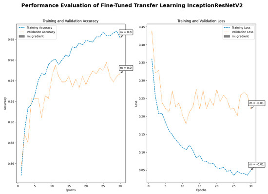In the ever-evolving domain of neuro-oncology, the relentless pursuit of knowledge remains a cornerstone of advancements in diagnostic methodologies and therapeutic interventions, offering a ray of hope amid the complexities of cerebral pathology. The integration of cutting-edge technologies such as deep learning and artificial intelligence (AI) has revolutionized medical image analysis, driving significant progress in the identification, characterization, and management of various pathologies, including lung and breast carcinomas [6,7]. This synergy empowers healthcare professionals with enhanced decision-making capabilities, facilitating precise delineation of pathological entities and informing tailored treatment regimens to optimize patient outcomes [8,9]. At the forefront of surgical planning, artificial intelligence has become an indispensable tool, enabling meticulous segmentation of lesion boundaries and critical brain structures. By leveraging predictive analytics, AI not only anticipates potential complications but also forecasts recurrence probabilities and treatment responses, thereby guiding the formulation of personalized follow-up strategies and refining patient care pathways. Enter transfer learning (TL) [10,11], a pivotal approach in contemporary machine learning that has garnered significant attention within the medical community for its ability to leverage pre-trained models for specialized medical imaging tasks. TL streamlines the model development process by capitalizing on knowledge distilled from extensive datasets, thereby expediting model deployment while reducing computational overhead. As a key component of medical image analysis, TL utilizes renowned architectures such as VGG, ResNet, Inception, MobileNet, and DenseNet, each designed to address specific diagnostic challenges with exceptional accuracy. Delving into the technical nuances, the fusion of transfer learning with neural network architectures establishes a sophisticated framework capable of discerning intricate patterns within medical imagery with unprecedented precision. This synergy extends beyond conventional methodologies, encompassing a diverse array of specialized models poised to enhance the diagnostic capabilities of healthcare professionals. The benefits of transfer learning are evident across the patient care continuum, as early identification and accurate classification of diseased entities are crucial for the timely initiation of therapies [12]. The ongoing evolution of deep learning, artificial intelligence, and transfer learning is set to drive a revolutionary transformation in medical image analysis. This dynamic relationship has the potential to redefine the standards of patient care and diagnostic accuracy. In the present study, we embarked on a rigorous comparative analysis, evaluating the performance of four prominent transfer learning paradigms—InceptionResNetV2, VGG19, Xception, and MobileNetV2—in classifying MRI data. The cornerstone of our contribution lies in the innovative application of transfer learning methodologies, coupled with fine-tuning techniques, optimize model performance in categorizing and predicting brain neoplasms with unprecedented precision and efficiency.