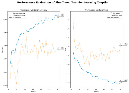Despite these promising results, model robustness remains a key concern. The fine-tuned Xception model achieves a 96.11% accuracy, outperforming several state-of-the-art architectures, indicating its superior feature extraction capability. Robustness is further ensured through transfer learning, where pre-trained weights from large-scale datasets enhance the model’s ability to generalize across different types of brain tumors. To prevent overfitting and improve generalization, the model incorporates data augmentation techniques such as rotation, flipping, and contrast adjustments, ensuring it learns meaningful features rather than memorizing specific patterns. Additionally, regularization techniques like dropout and batch normalization are applied to stabilize training and mitigate variance issues.
